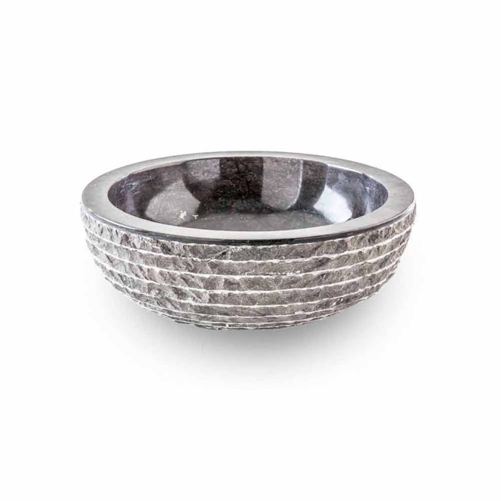 Ručně vyrobené umyvadlo z mramoru z lomů jižně od Mount Merapi. Leštěný uvnitř a na horním okraji je surový a zvenčí opracovaný frézou a dlátem. Hmota se ukazuje a nechává se dotknout, jaká je a jak se může stát!