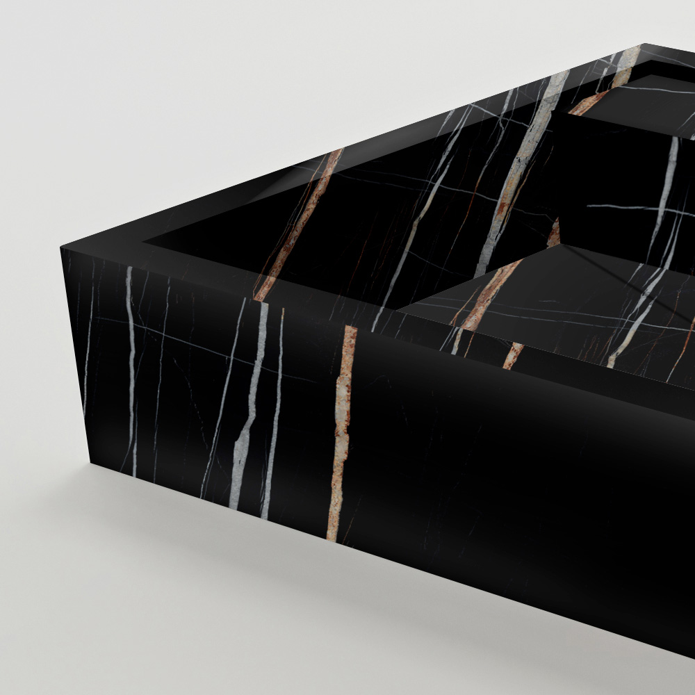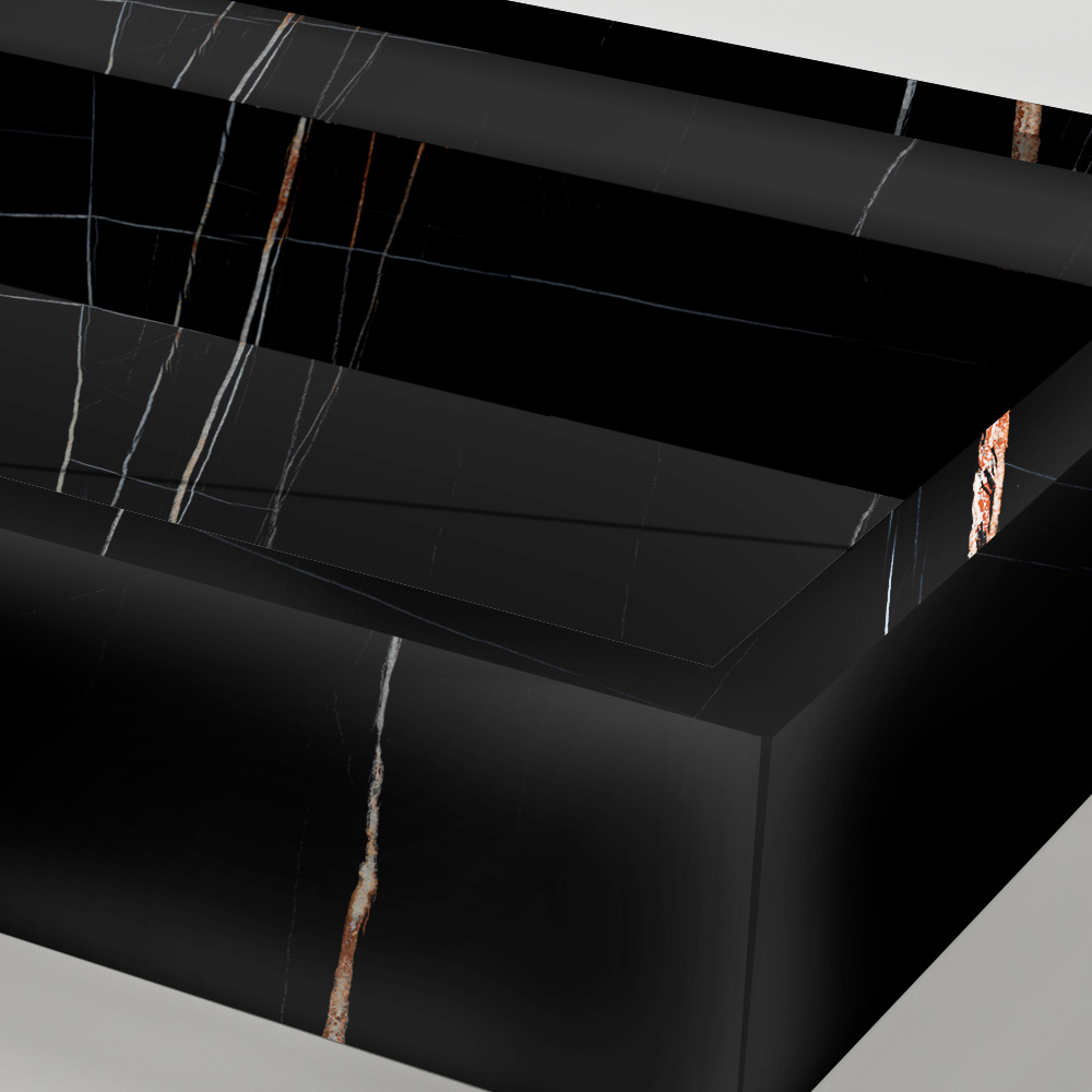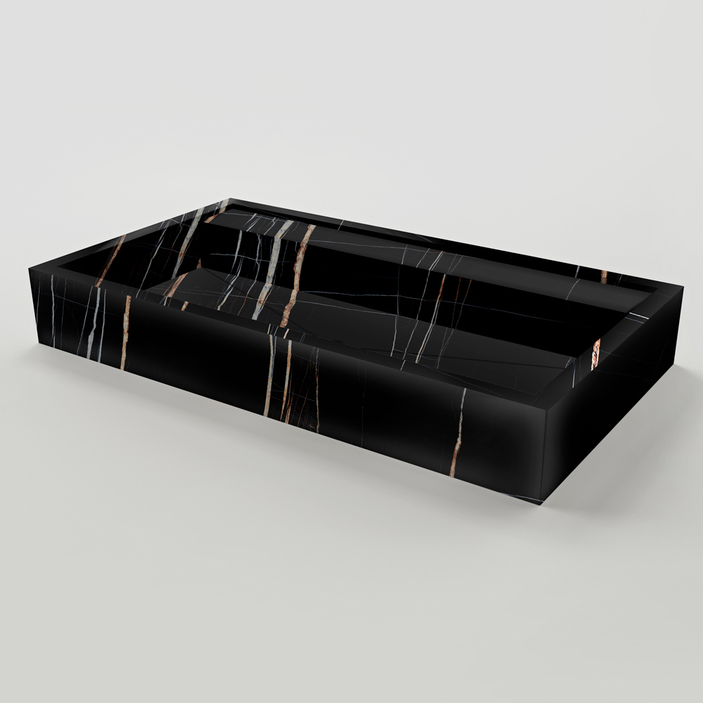 Umyvadlo na desku z porcelánového kameniva s mramorovým efektem, vyrobeno v Itálii.