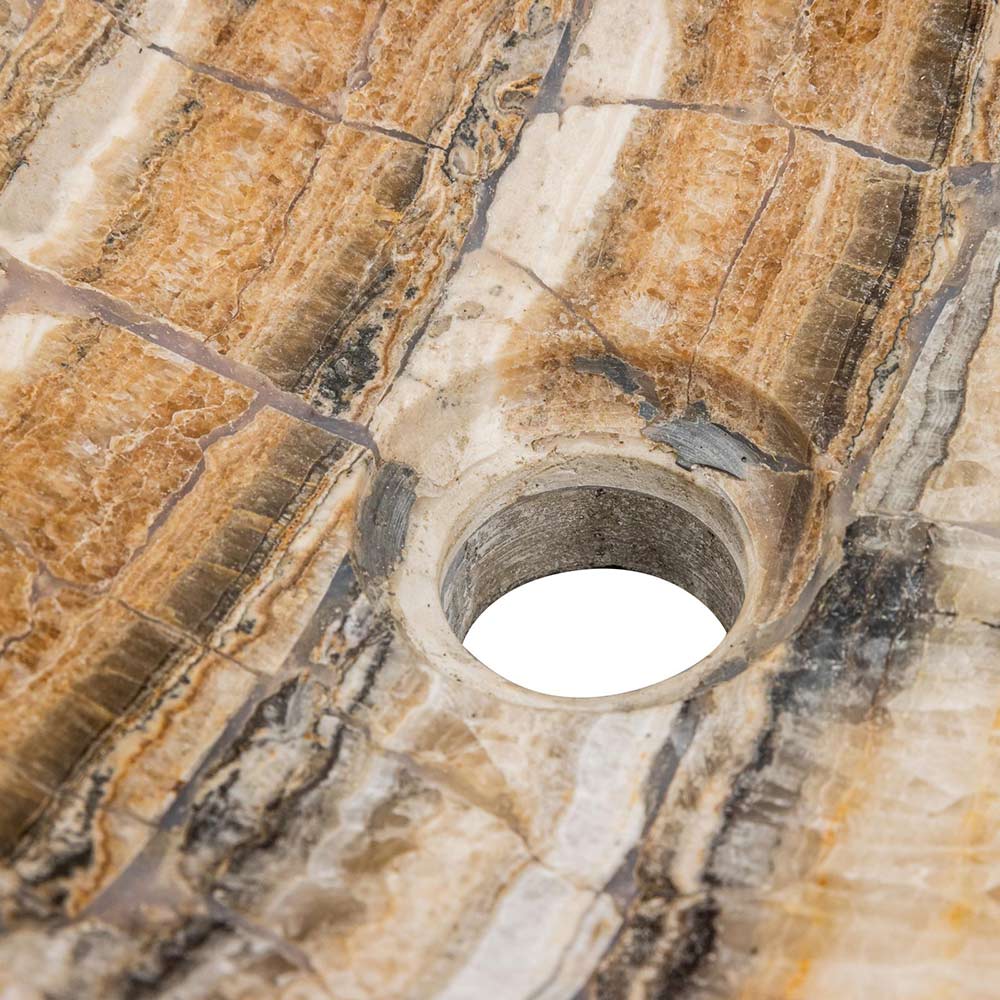 Palata je umyvadlo na desku vyrobené ručně z říčního kamene s mozaikou z ónyxového kamene uvnitř.