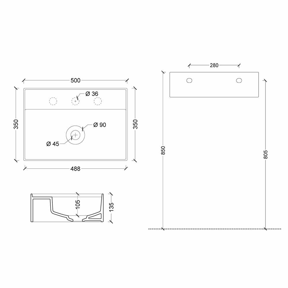 Keramické závěsné umyvadlo Sun 50x35 cm, dostupné v různých barvách, vyrobeno v Itálii