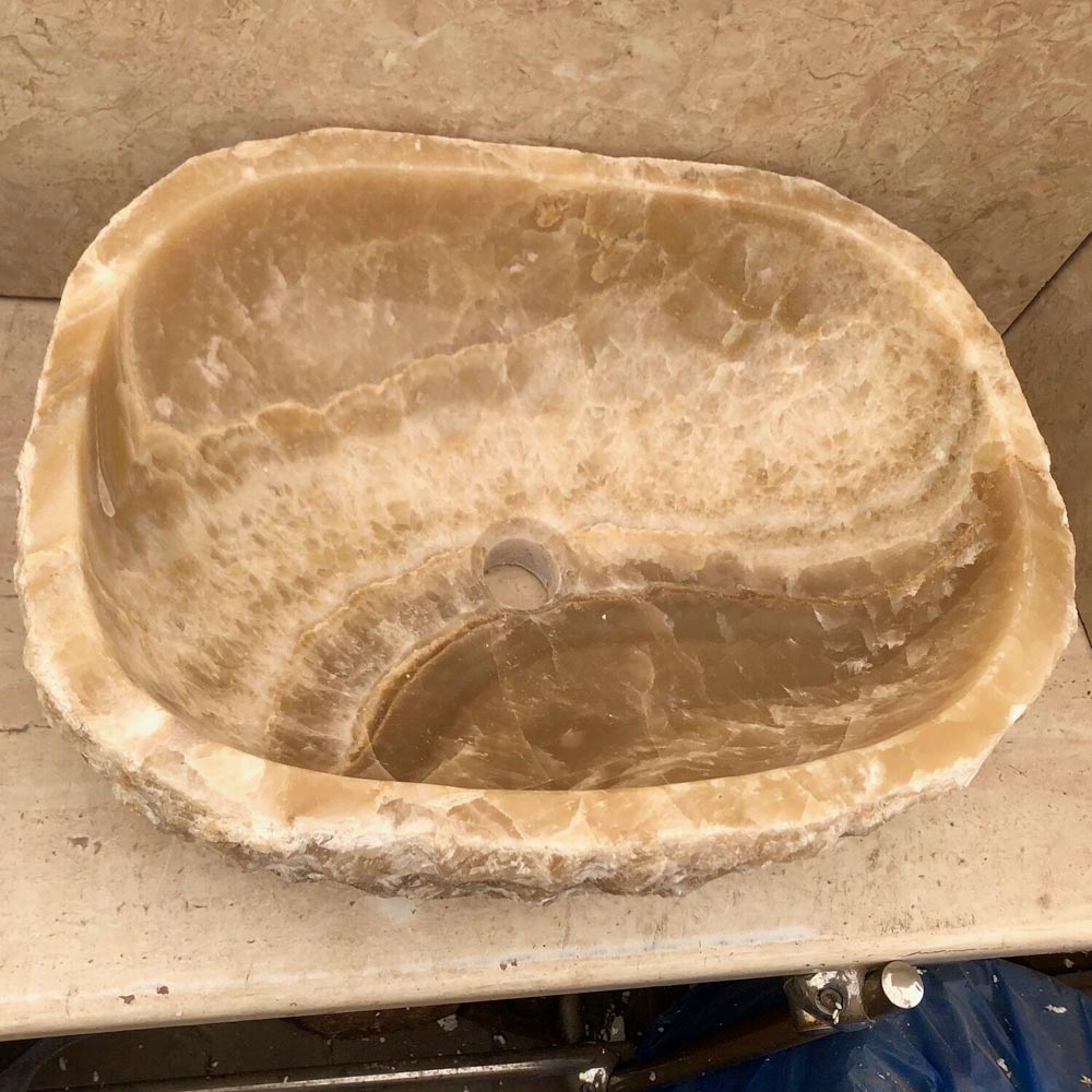 Umyvadlo na desku z přírodního kamene, ruční práce.