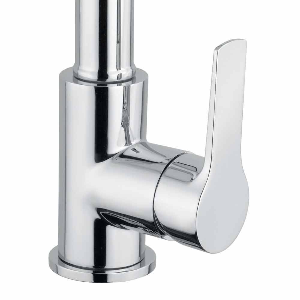 Moderní umyvadlová baterie s dvouproudovou výsuvnou ruční sprchou z mosazi Made in Italy.