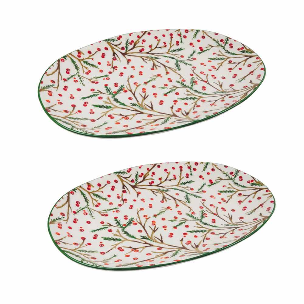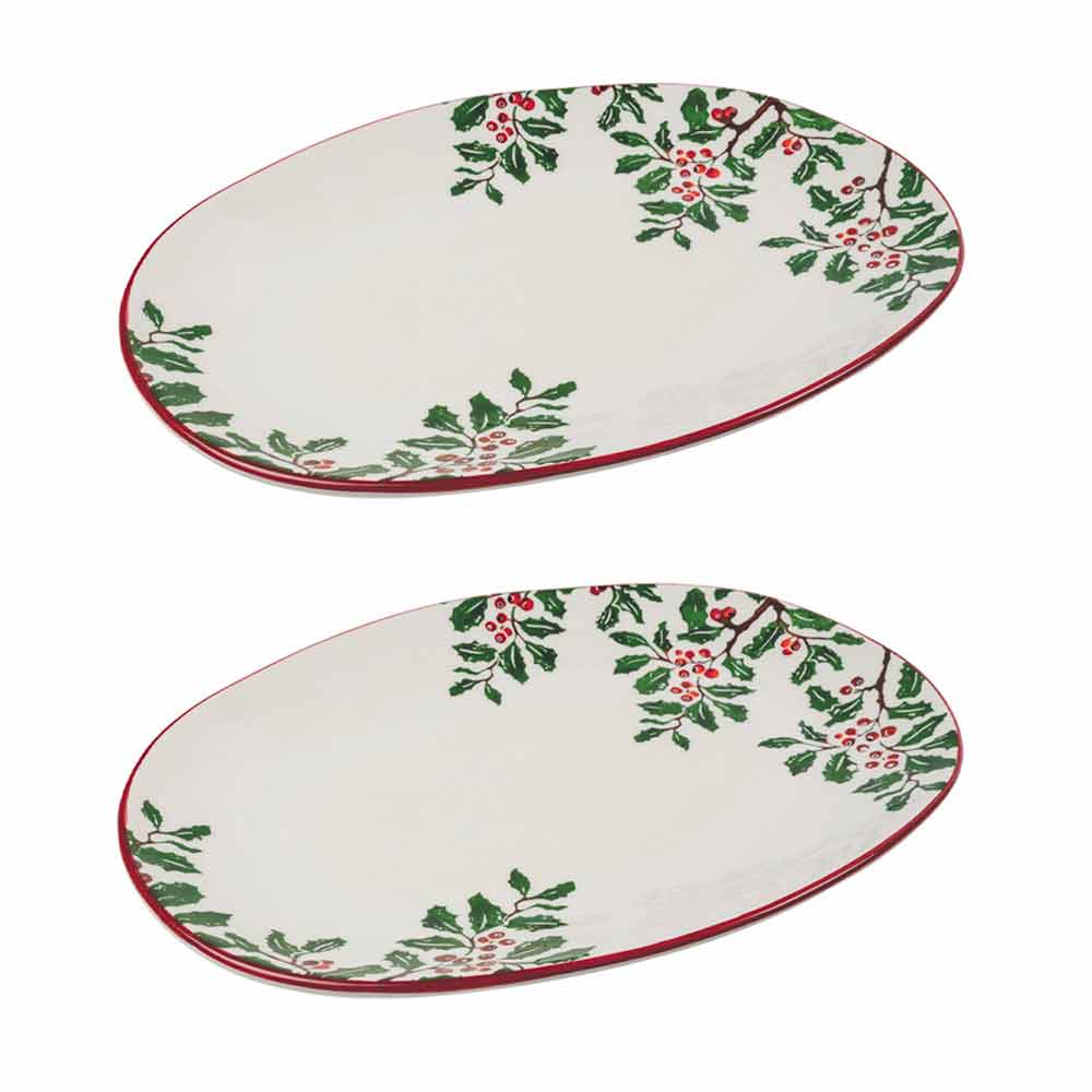 2 vánoční oválné tácky v dolomitu s dekoracemi na výběr z cesmíny nebo řeznictví.