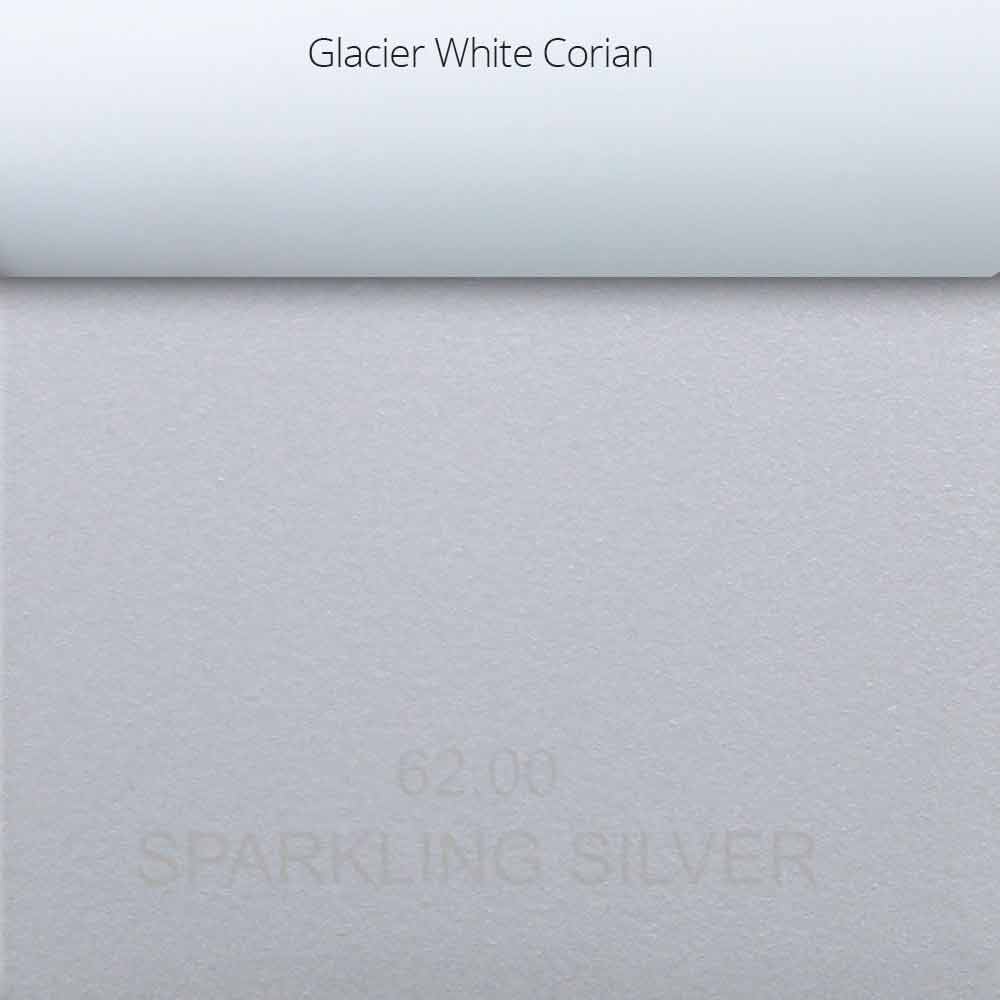 - Sparkling Silver + Glacier White Corian®: matný stříbrný kovový povrch s bílými prvky DuPont ™ Corian®;