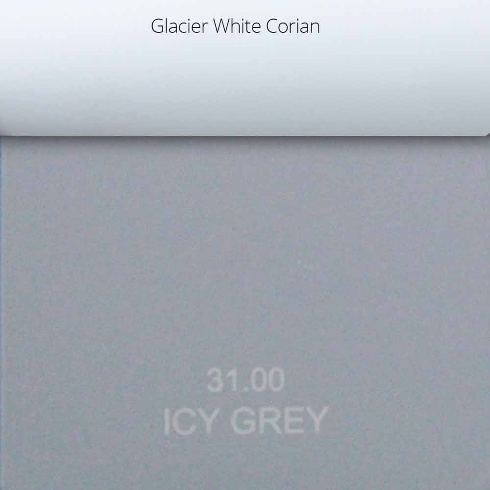 - Icy Gray + Glacier White Corian®: matná studená světle šedá povrchová úprava s bílými prvky DuPont ™ Corian®;