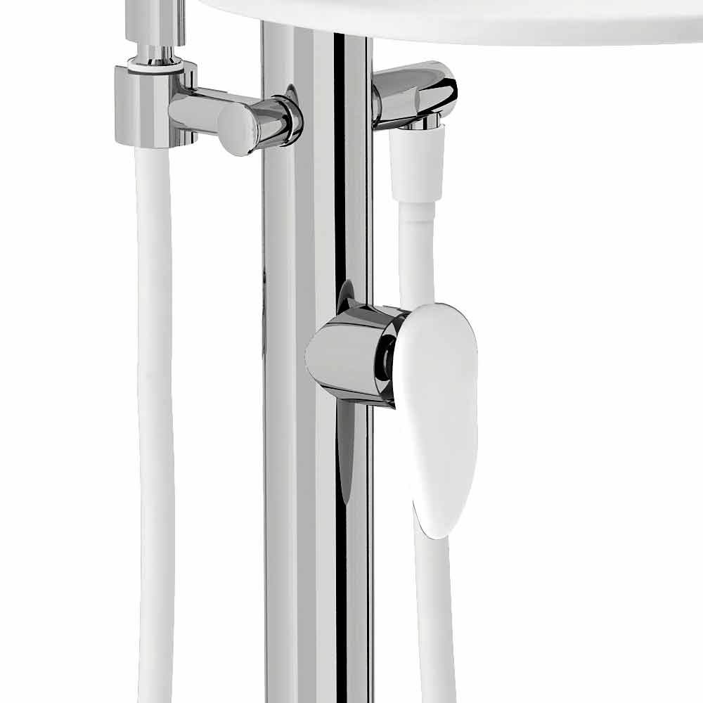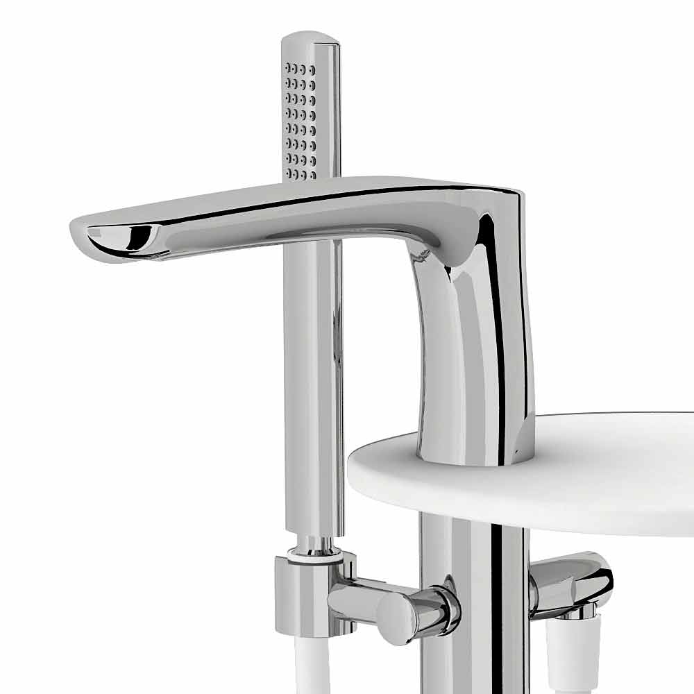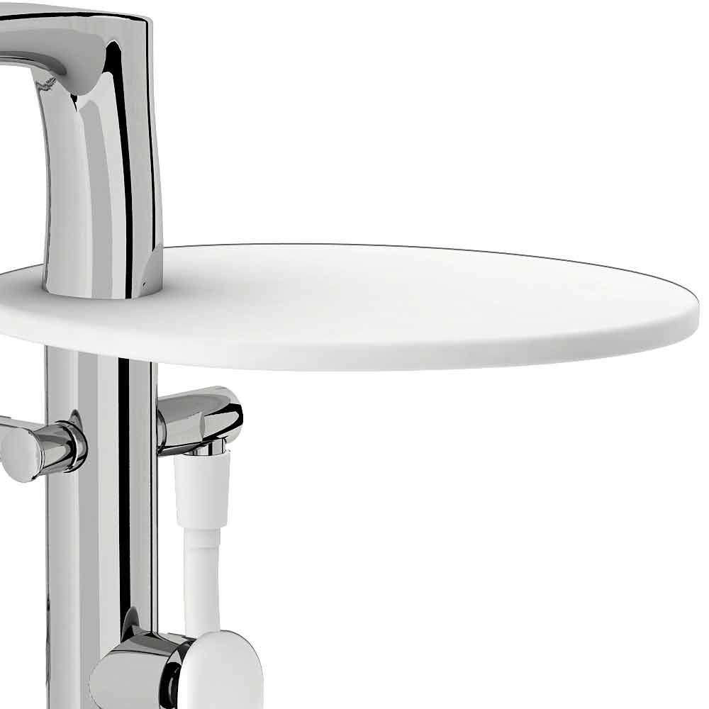 Vanová nástěnná baterie s přepínačem, duplexní ruční sprchou a policí v DuPont ™ Corian® Made in Italy.