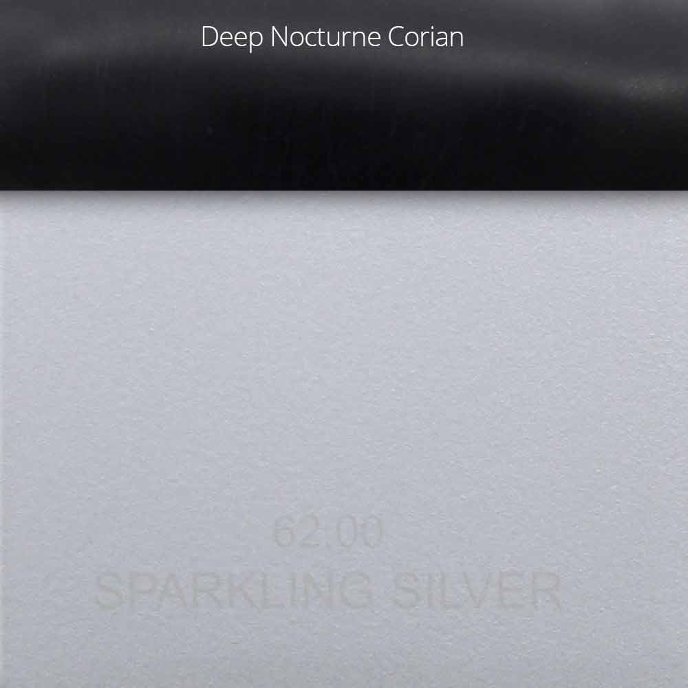 - Šumivé stříbro + Deep Nocturne Corian®: matný stříbrný kovový povrch s prvky v černé barvě DuPont ™ Corian®;