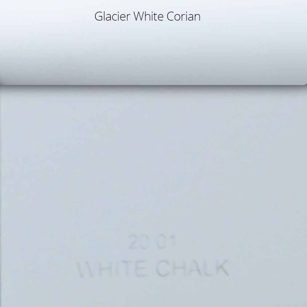 - White Chalk + Glacier White Corian®: matně bílý povrch s bílými prvky DuPont ™ Corian®;