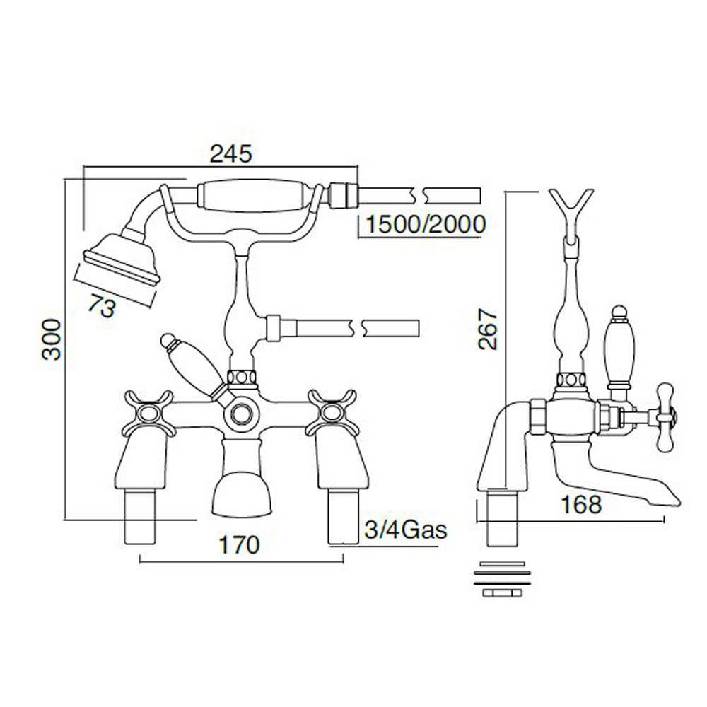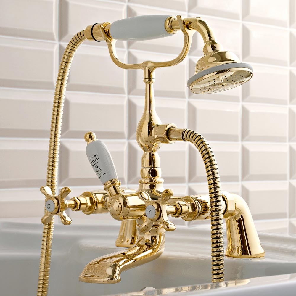 Klasická vanová baterie na okraj vany s ruční sprchou z mosazi, vysoká kvalita, vyrobeno v Itálii.