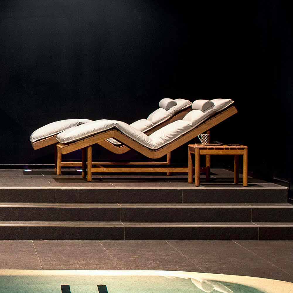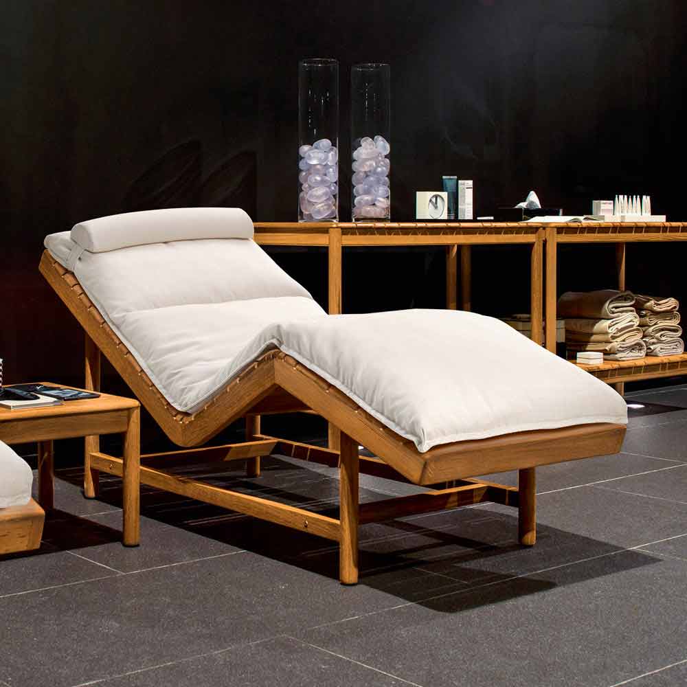 Lůžko Barcode zahradě lze použít uvnitř i venku a je složen z kompletní polštáře z teakového dřeva struktury 194x70xH8 cm a opěrky hlavy polštář 60x14xH7 cm (plně odnímatelný).