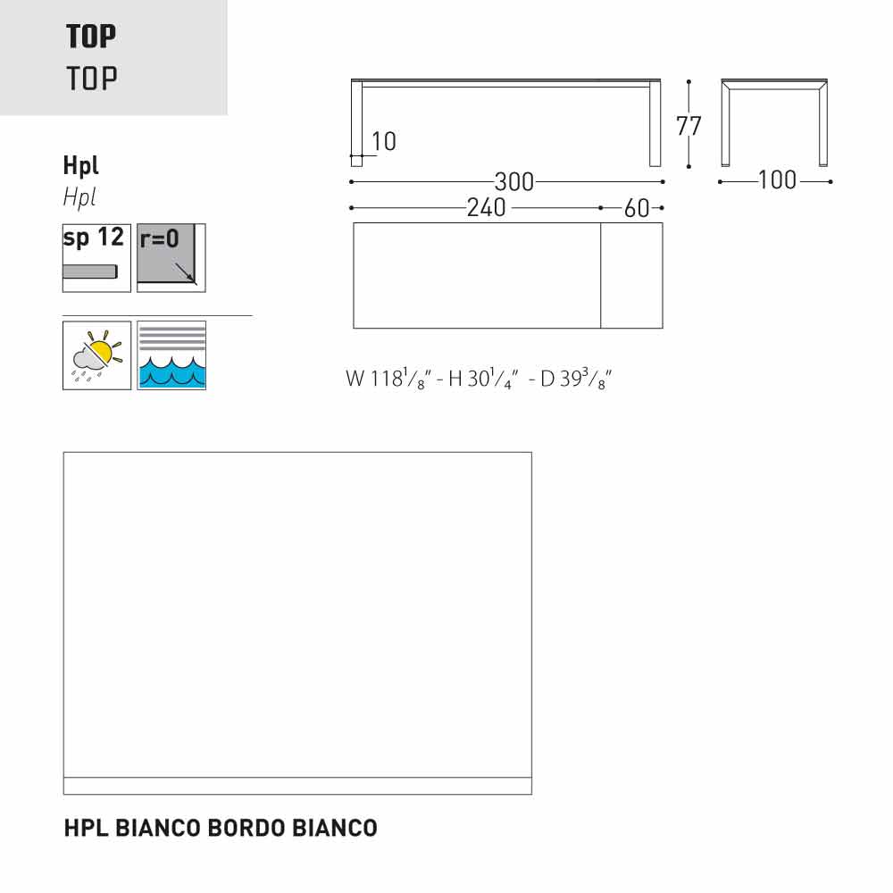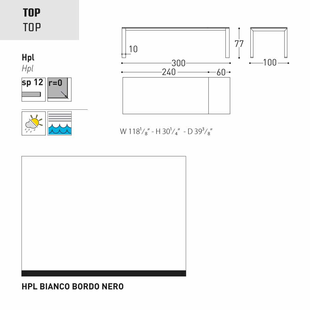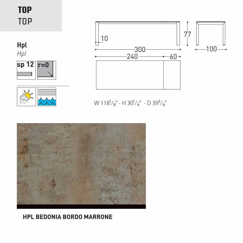 - 100 x 240/300 x H 77 cm; 1 prodloužení 60 cm