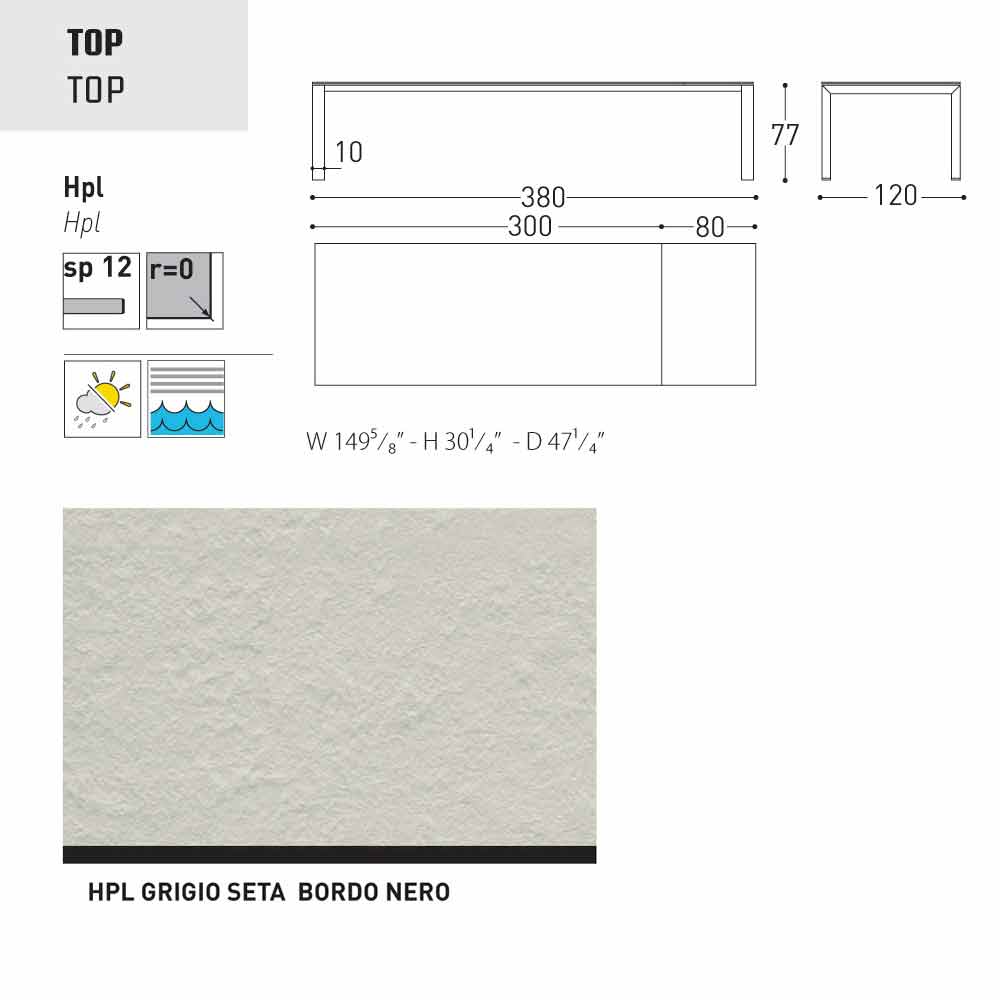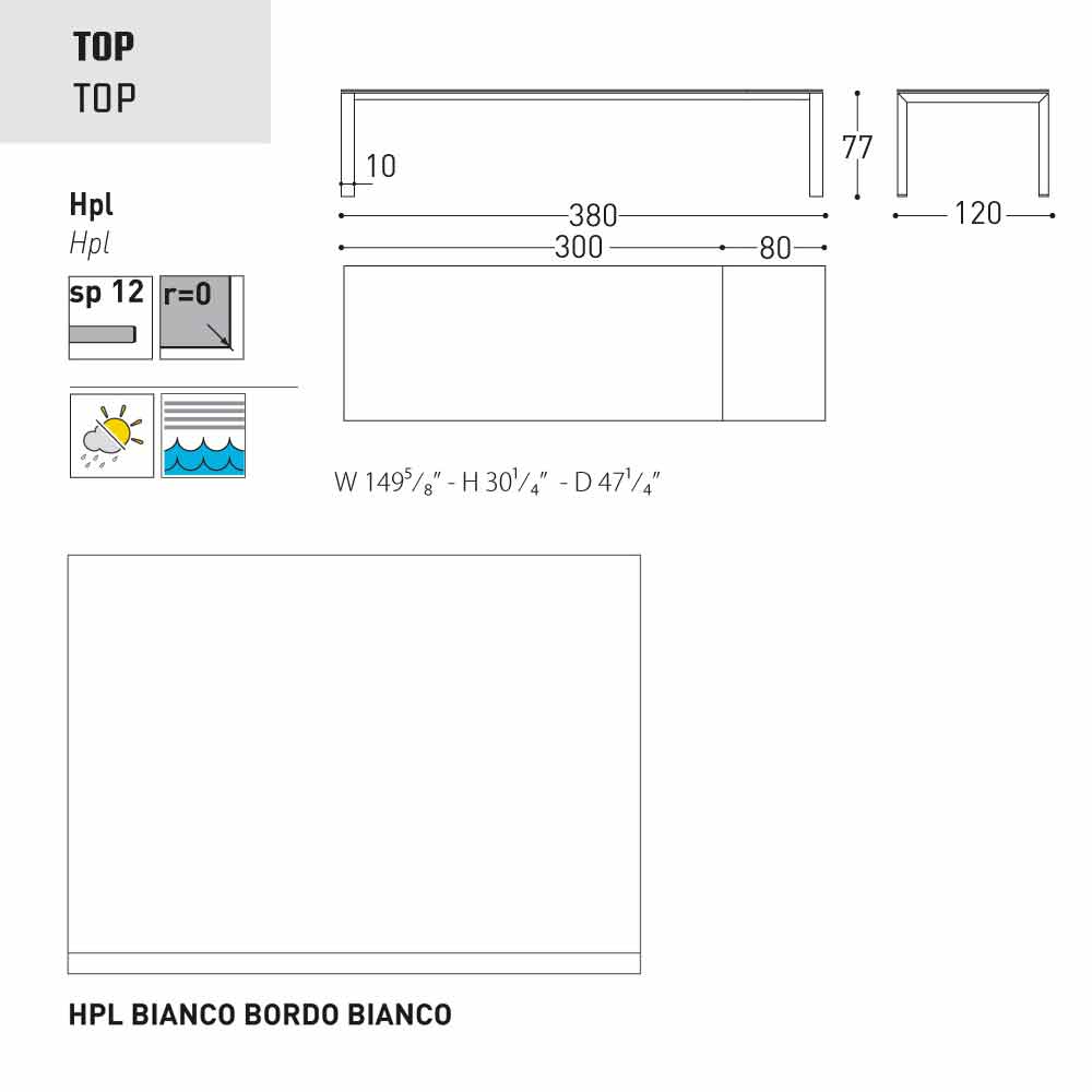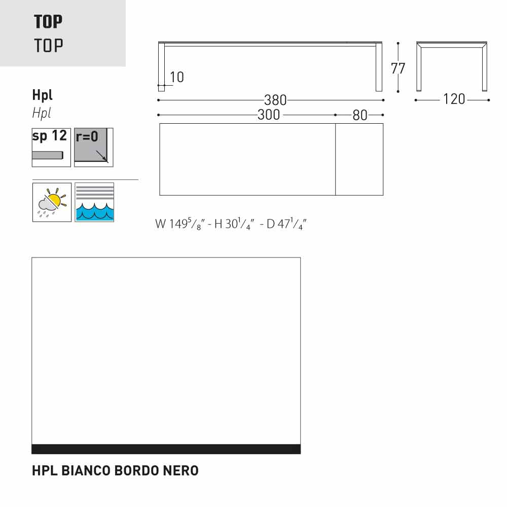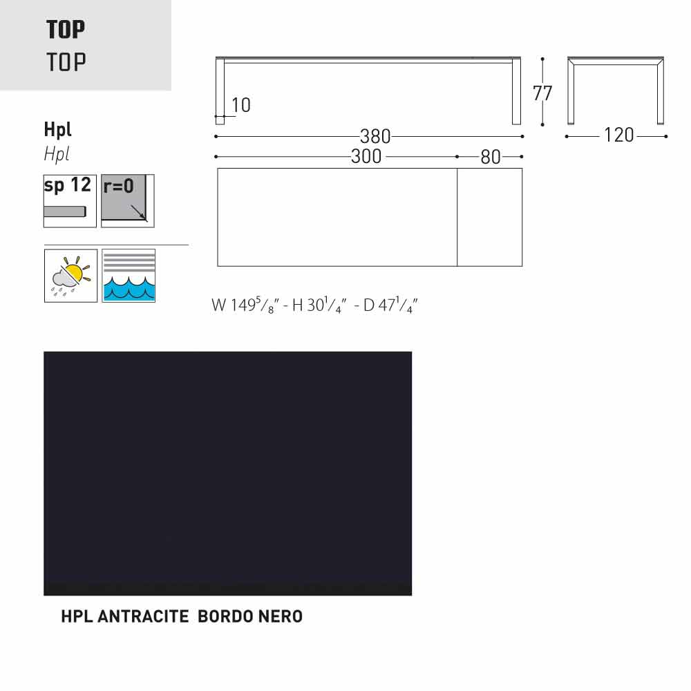 - 120 x 300/380 x H 77 cm; 1 Rozšíření 80 cm