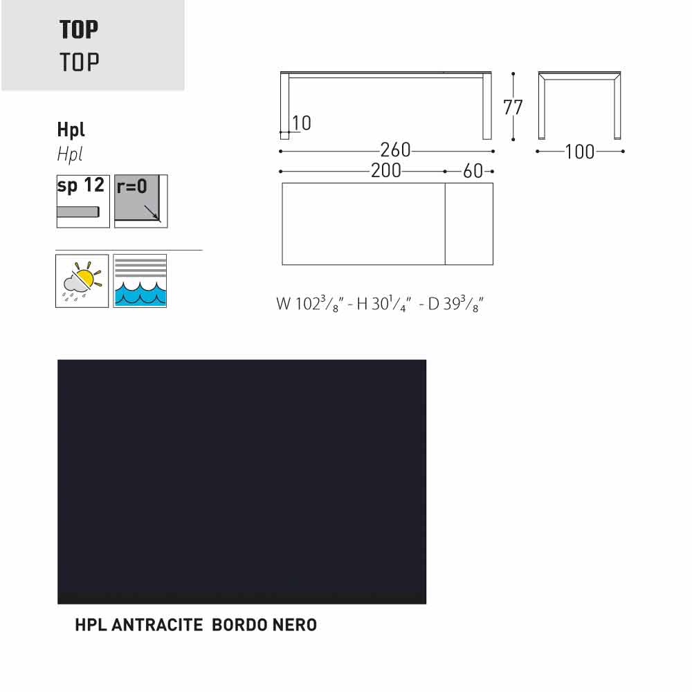- 100 x 200/260 x H 77 cm; 1 prodloužení 60 cm
