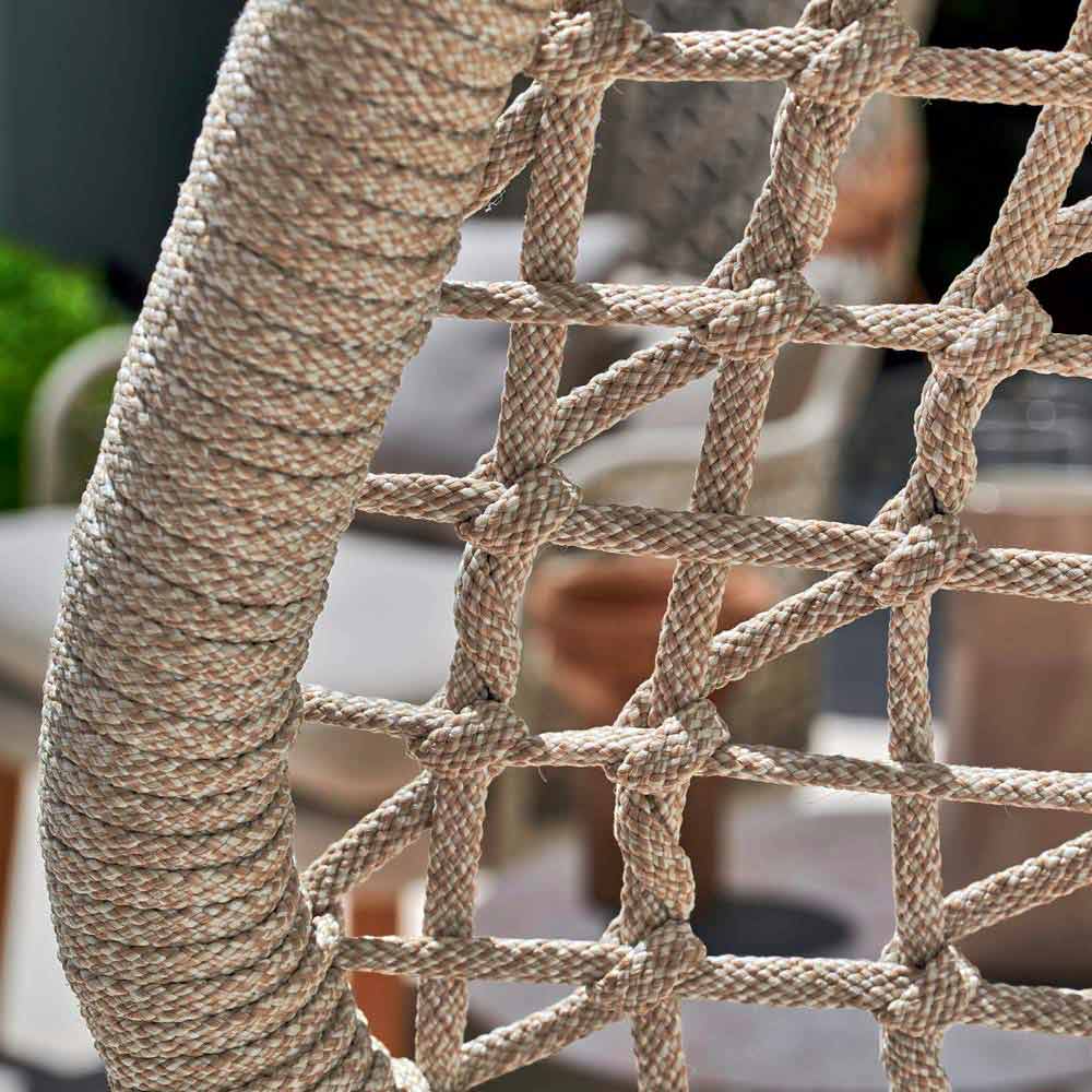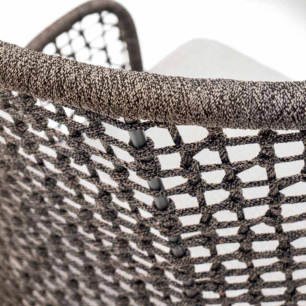 Emma je fantastické zahradní křeslo se strukturou z ručně tkaného syntetického vlákna s hliníkovým rámem potaženým práškem, který lze vybrat ze dvou barev: béžové a tmavě šedé.