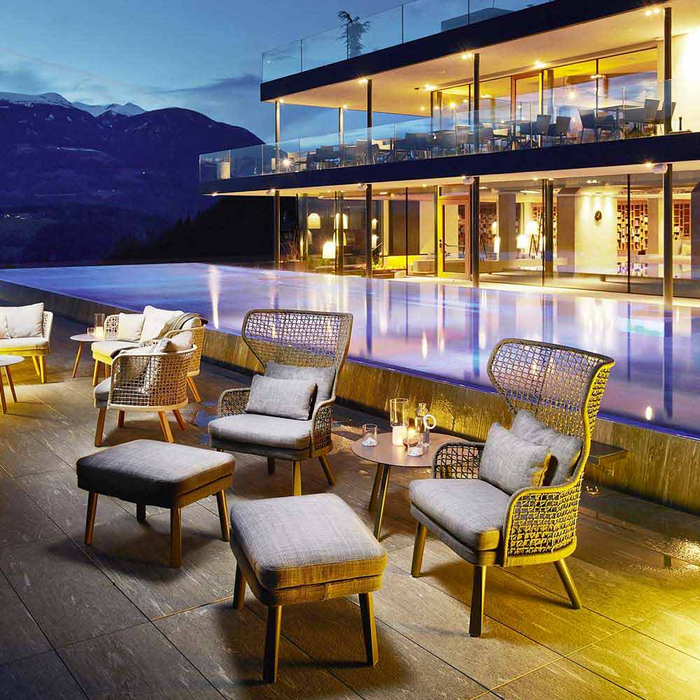 Díky své funkčnosti a maximálnímu pohodlí bude ideální pro vybavení venkovního prostředí, jako jsou terasy, bazény, zahrady; ale nalézá perfektní umístění i uvnitř, v obytném prostoru.