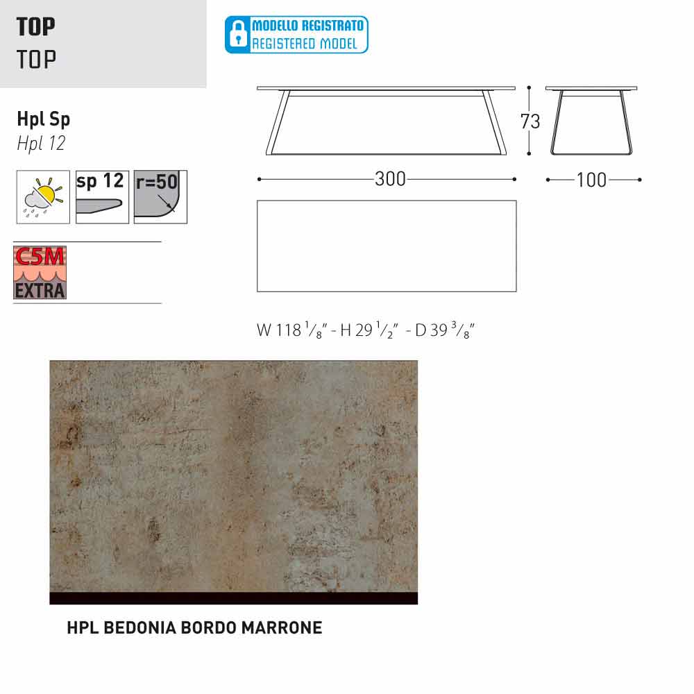 tažená ocel základní deska v kataforézní a práškové lakování. HPL horní, tloušťka 12 mm. V tabulce pro externí Kolonaki je registrovaná model a je nabízen v různých provedeních a velikostech. Se svým univerzálním designem mohou být použity na terase nebo na zahradě, stejně jako v obývacím pokoji.