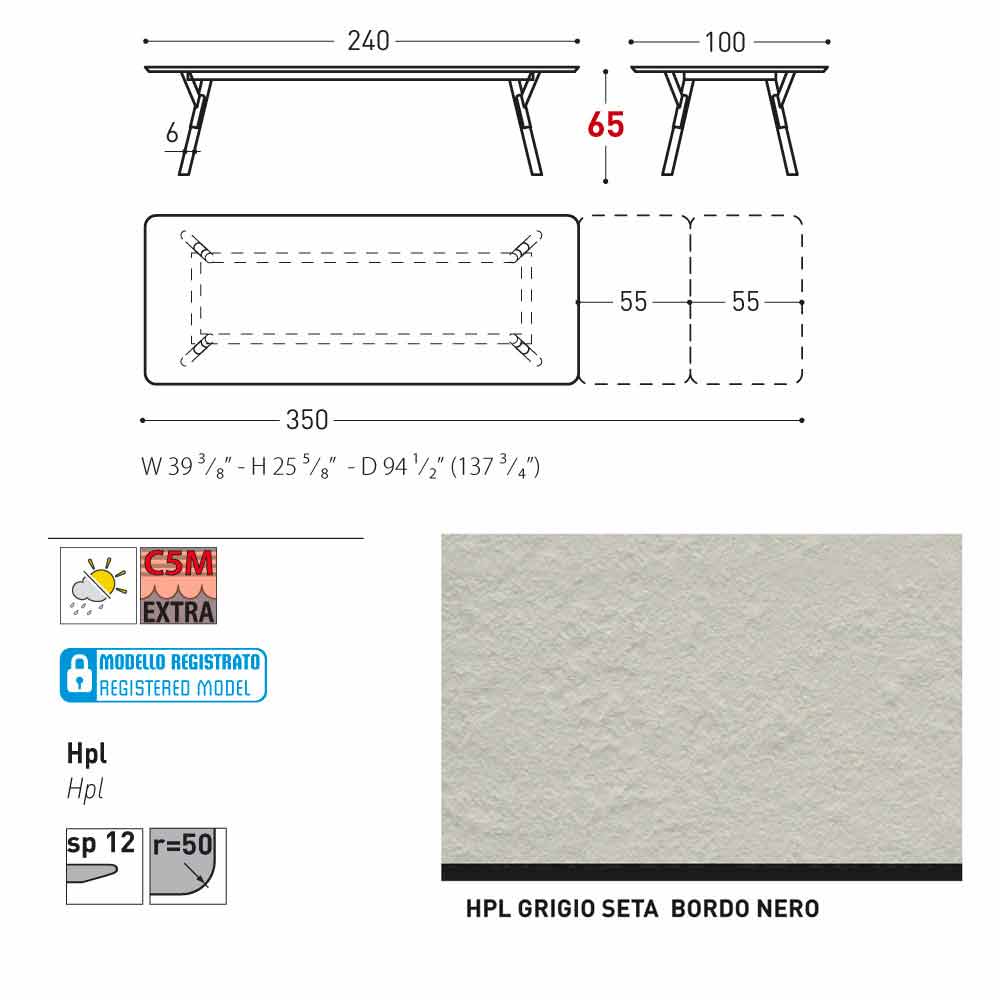 Vlastnosti HPL: vysokotlaké lamináty. Skládají se z několika vrstev papíru (70%), impregnované teplem tvrditelných pryskyřic (30%), a je slisována prostřednictvím kombinovaného působení tepla (asi 150 stupňů) a vysokého tlaku (vyšší než 7 MPa) po dobu asi 45 až 50 minut. Výsledkem je stabilní, nereaktivní, neporézní a vysokou hustotou, s fyzikálními a chemickými vlastnostmi vysoké mechanické pevnosti (řízenou teplotu výletních 80, -40 °, na omezenou dobu kratší než 30 sekund při extrémním teplotám), vystavení na světlo a vystavení změnám teploty, a to i v mořském prostředí.