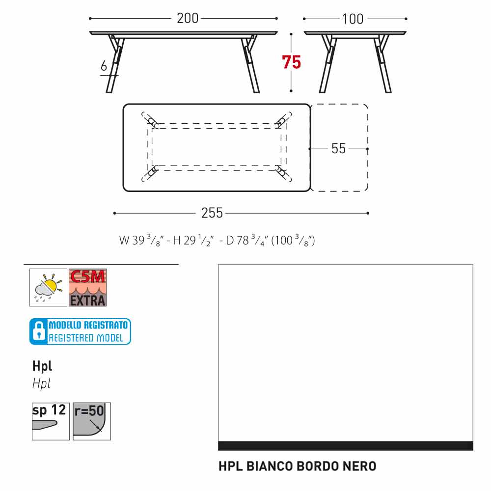 Vlastnosti HPL: vysokotlaké lamináty. Skládají se z několika vrstev papíru (70%), impregnované teplem tvrditelných pryskyřic (30%), a je slisována prostřednictvím kombinovaného působení tepla (asi 150 stupňů) a vysokého tlaku (vyšší než 7 MPa) po dobu asi 45 až 50 minut. Výsledkem je stabilní, nereaktivní, neporézní a vysokou hustotou, s fyzikálními a chemickými vlastnostmi vysoké mechanické pevnosti (řízenou teplotu výletních 80, -40 °, na omezenou dobu kratší než 30 sekund při extrémním teplotám), vystavení na světlo a vystavení změnám teploty, a to i v mořském prostředí.