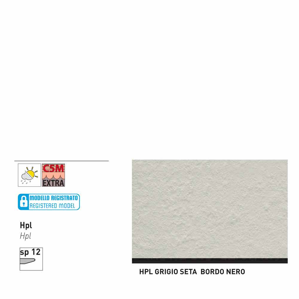 Vlastnosti HPL: vysokotlaké lamináty. Skládají se z několika vrstev papíru (70%), impregnované teplem tvrditelných pryskyřic (30%), a je slisována prostřednictvím kombinovaného působení tepla (asi 150 stupňů) a vysokého tlaku (vyšší než 7 MPa) po dobu asi 45 až 50 minut. Výsledkem je stabilní, nereaktivní, neporézní a vysokou hustotou, s fyzikálními a chemickými vlastnostmi vysoké mechanické pevnosti (řízenou teplotu výletních 80, -40 °, na omezenou dobu kratší než 30 sekund při extrémním teplotám), vystavení na světlo a vystavení změnám teploty, a to i v mořském prostředí.