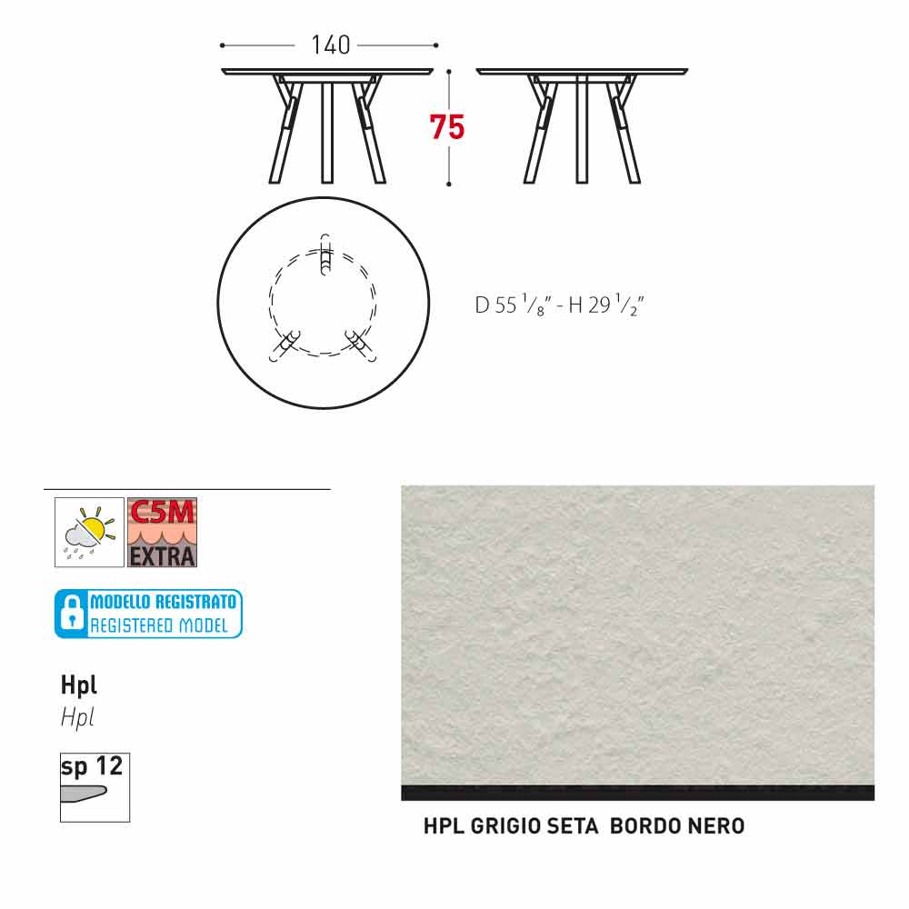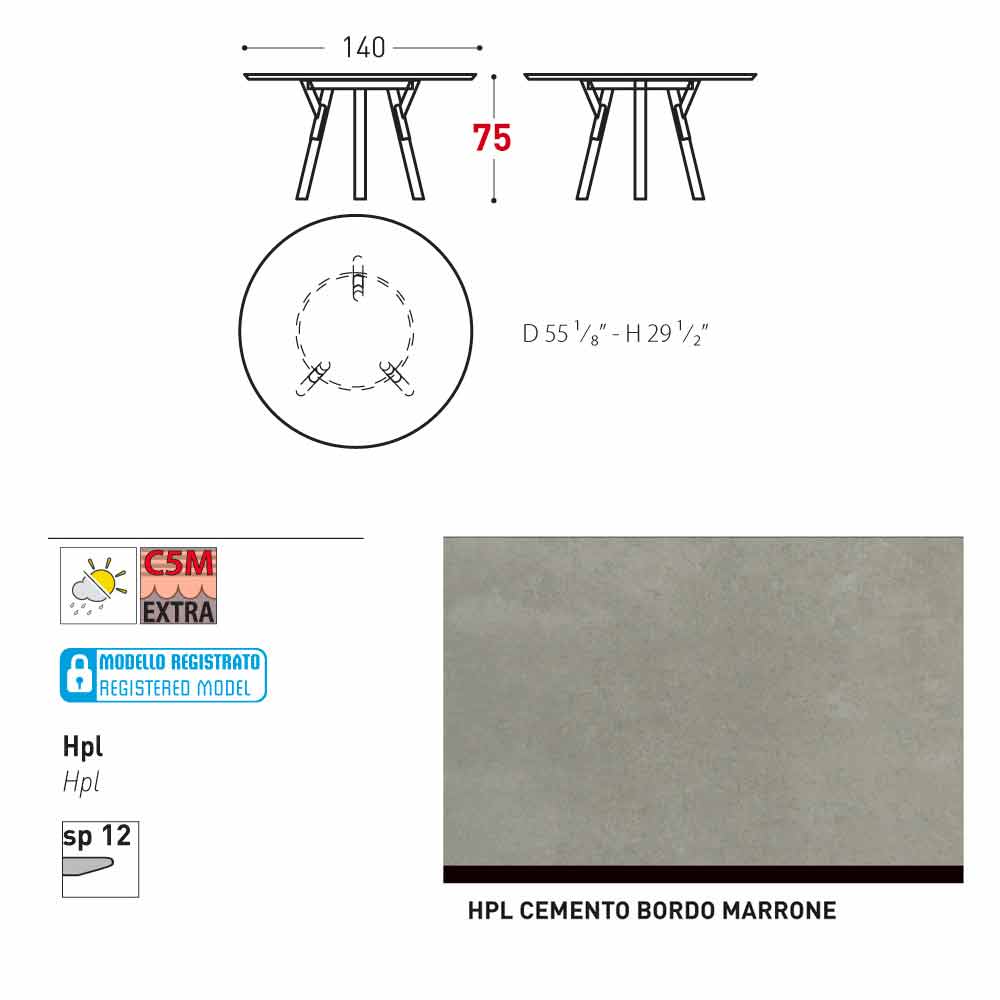 Odkaz je tabulka s moderní design a konstrukce (konzole + nohy) pokrytá z nerezové oceli. Horní je v HPL tloušťky 12 mm. Díky své univerzální konstrukci, může být použit jako venkovní stůl vybavit vnitřní prostředí. různé povrchové úpravy jsou k dispozici, které přizpůsobit rám, nohy a na desku stolu.