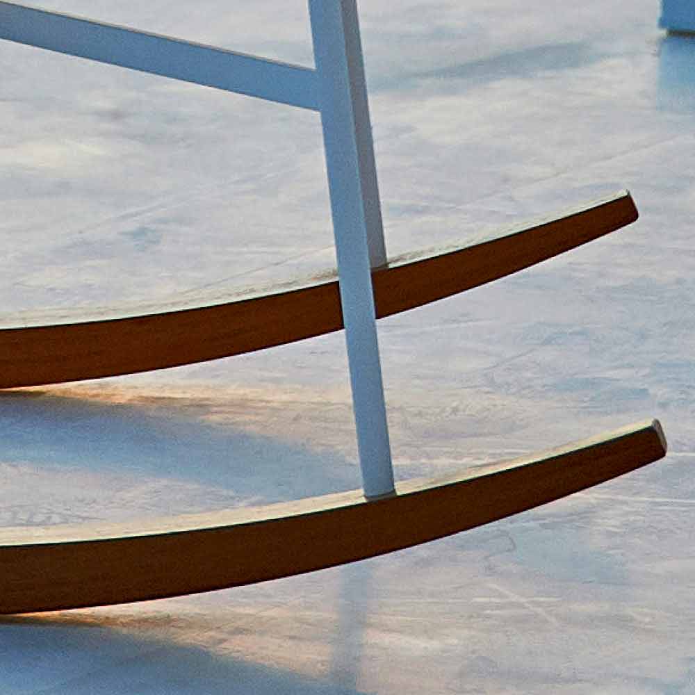 Summer Set je krásné venkovní houpací křeslo, které se vyznačuje nosnou konstrukcí v bílé práškové oceli a diapozitivy z přírodního iroko masivního dřeva.