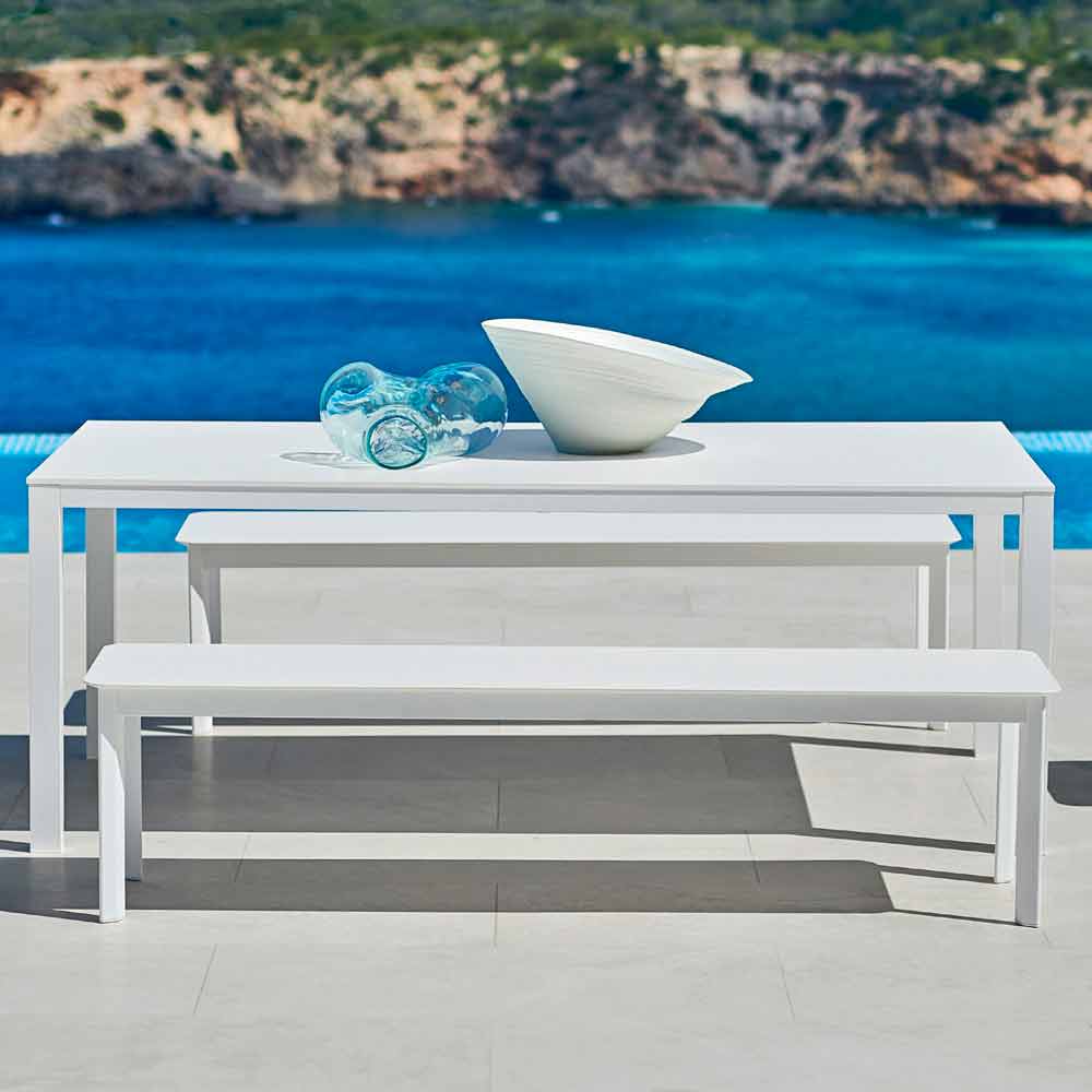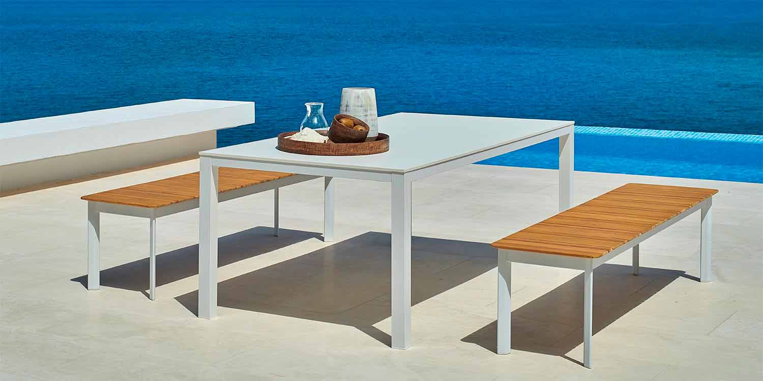 Systém je fantastická zahradní lavička s bílou práškovou hliníkovou strukturou ; se sedákem v HPL (sp 1.2) v provedení: setab šedá / černá, bílá b / černá, antracit b / černá, bílá b / bílá, cement b / hnědá, bedonia b / hnědá, korten b / hnědá ; nebo s keramikou (sp. 1.2) v povrchové úpravě: bílé vápno a šedá porfyr; nebo v teaku (sp 1.7) certifikované plantáže.