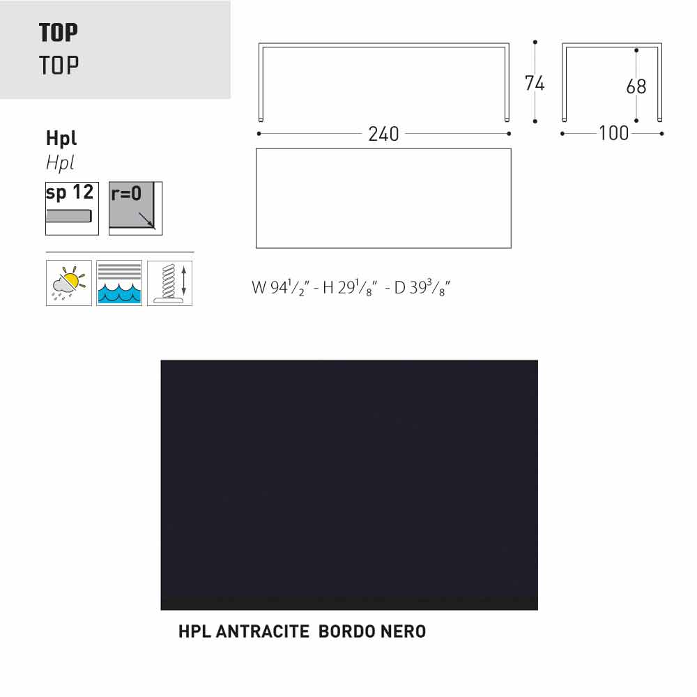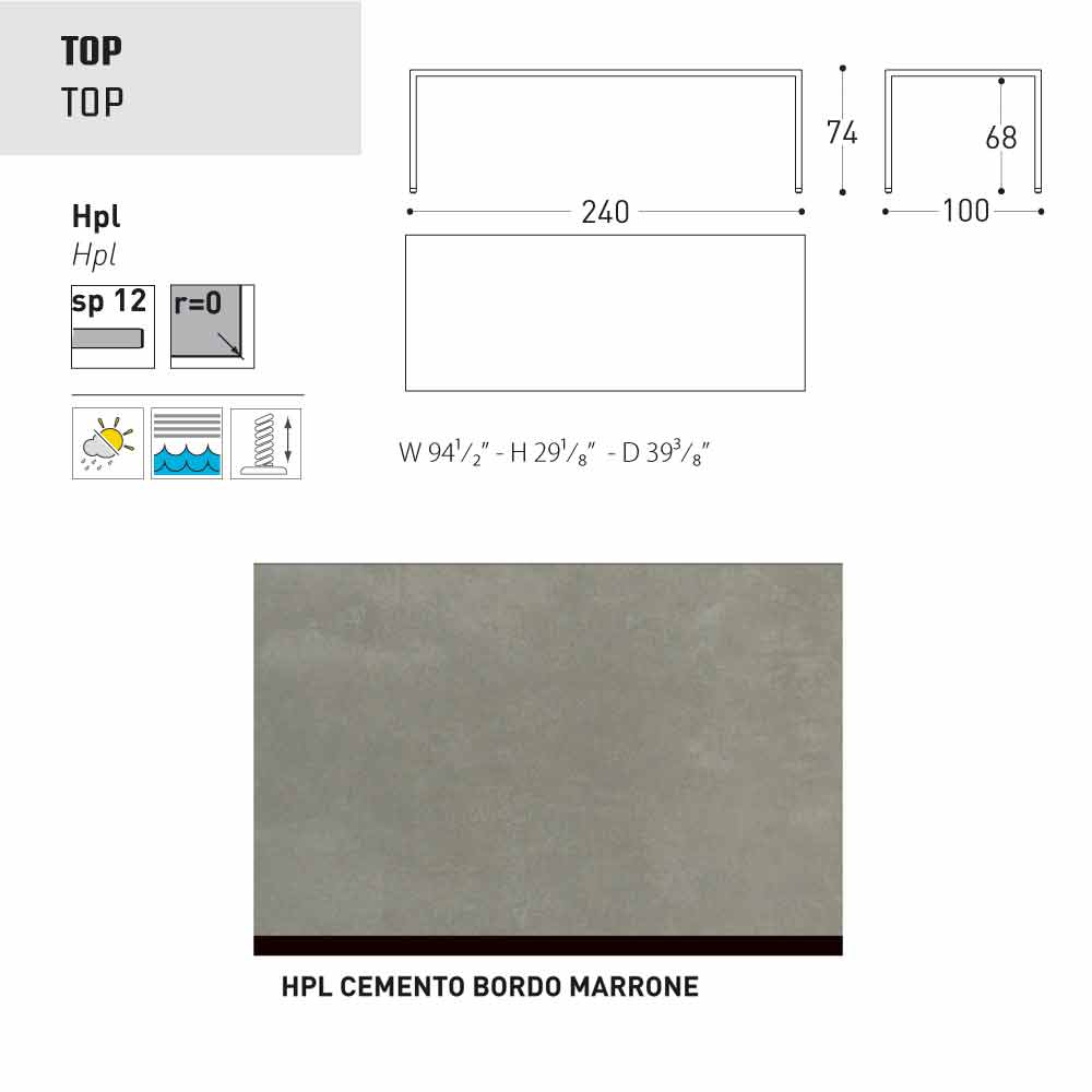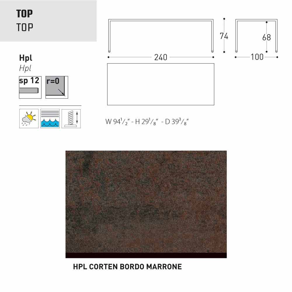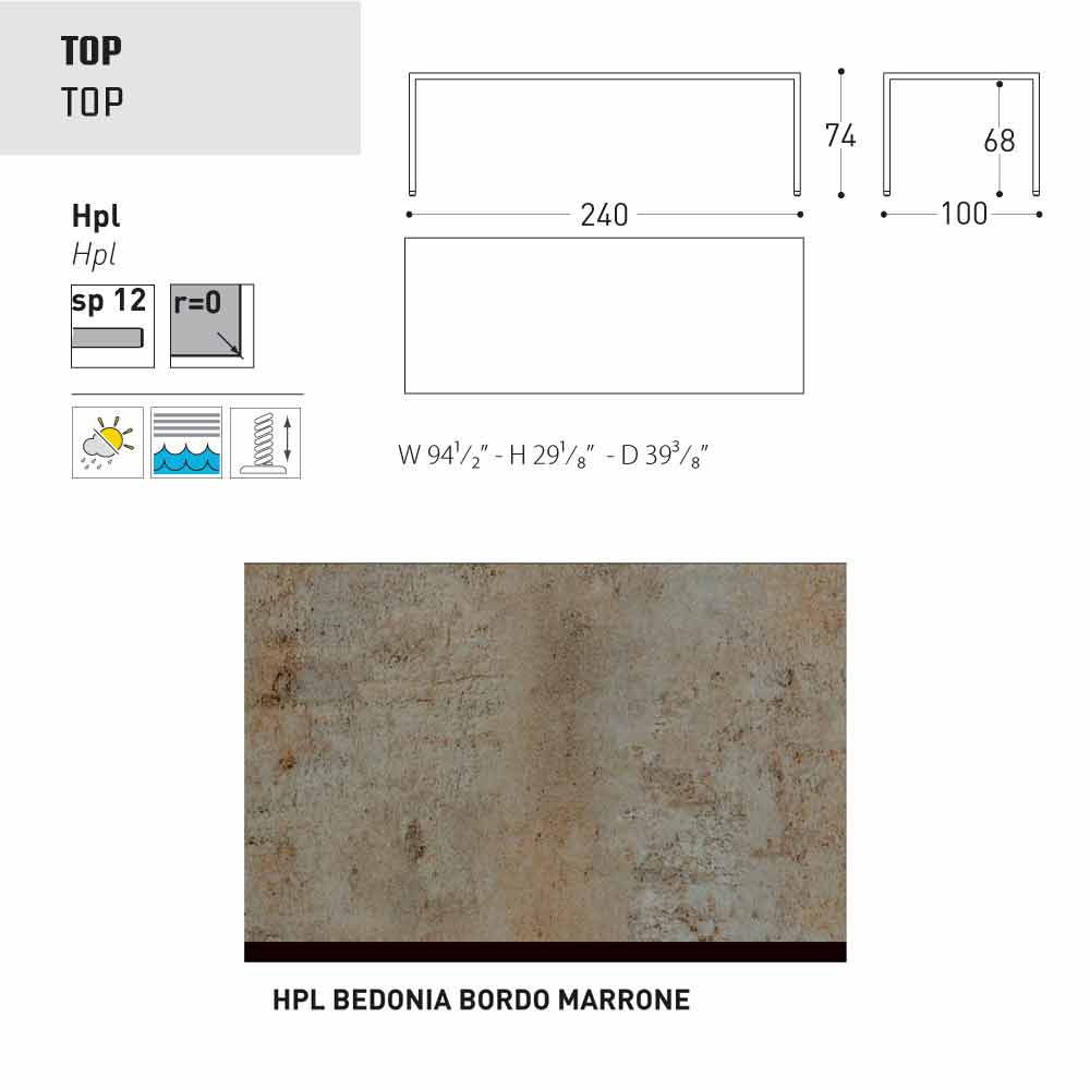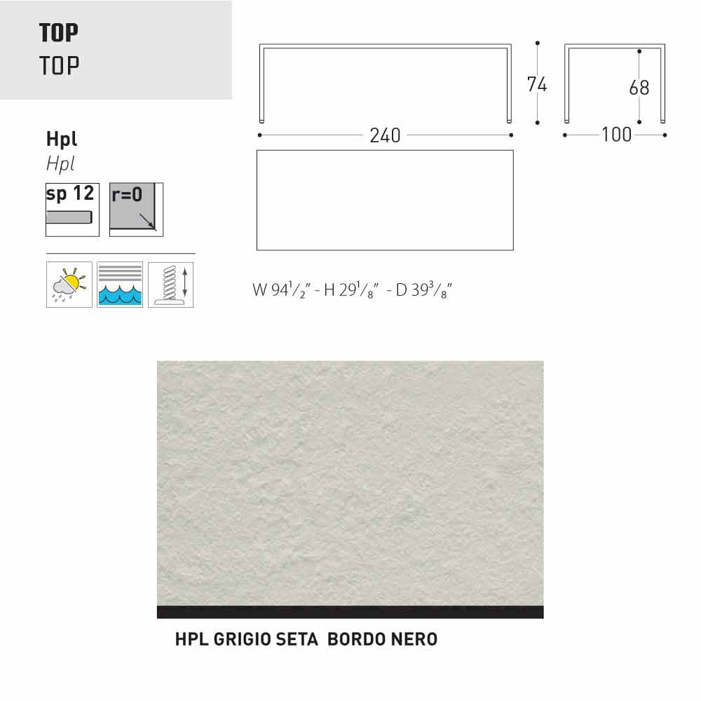 Sběr se strukturou ve formě prášku potaženého hliníku, HPL horní tloušťka 12 mm a nožky se od nastavení 0-5 mm. V tabulce Victor může být použita i jako venkovní tabulce, která v obývacím pokoji a je navržena v různých velikostech a provedeních.