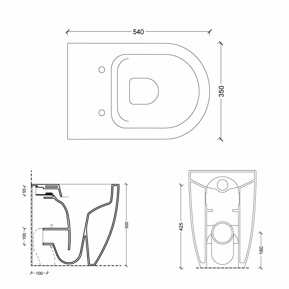 Bílá keramická toaletní váza, moderní design Shine Square H50 Rimless