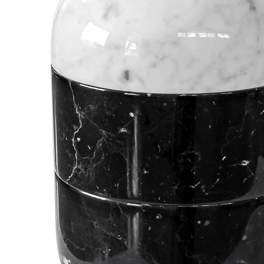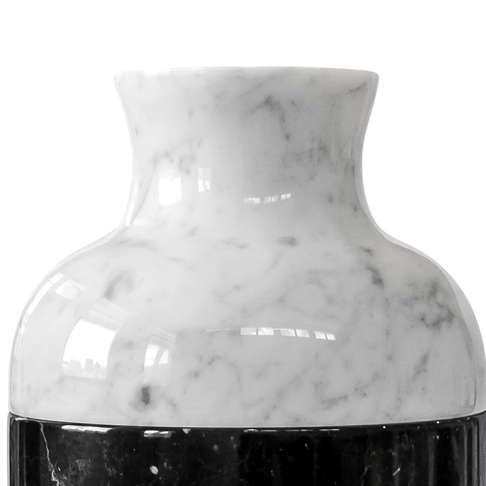 Tato dekorativní váza se vyznačuje řemeslným a luxusním designem rozděleným na 3 části, celé vyrobené z bílého kararského a černého saténového mramoru Marquinia.