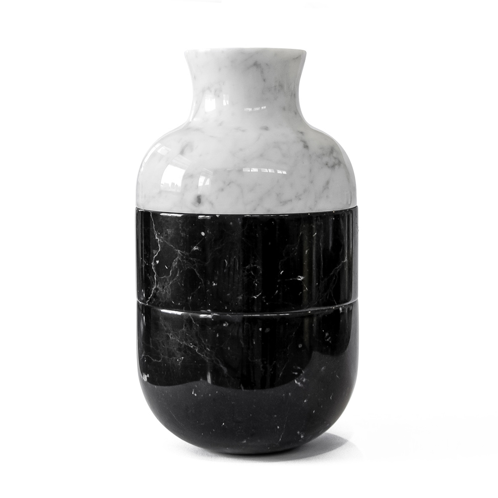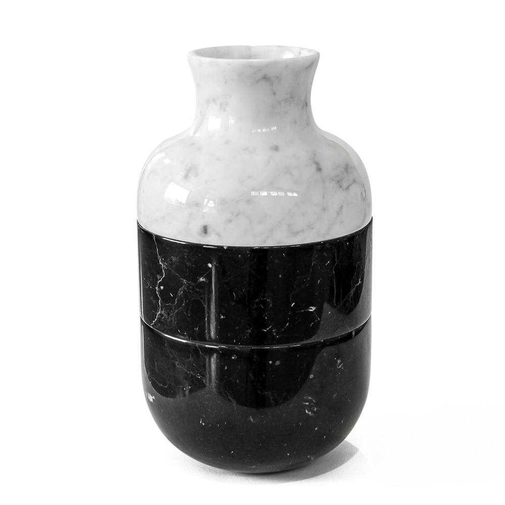 Dekorativní váza ze 3 dílů z bílého carrarského mramoru a černé marquinie vyrobené v Itálii.