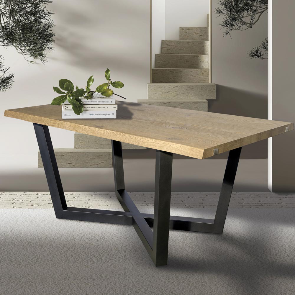 Stůl z dubového suka a kovové podnože Vyrobeno v Itálii.