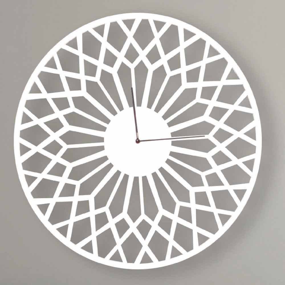 Velké kulaté nástěnné hodiny v bílé, růžové nebo turtledové dřevo vyrobené v Itálii.
