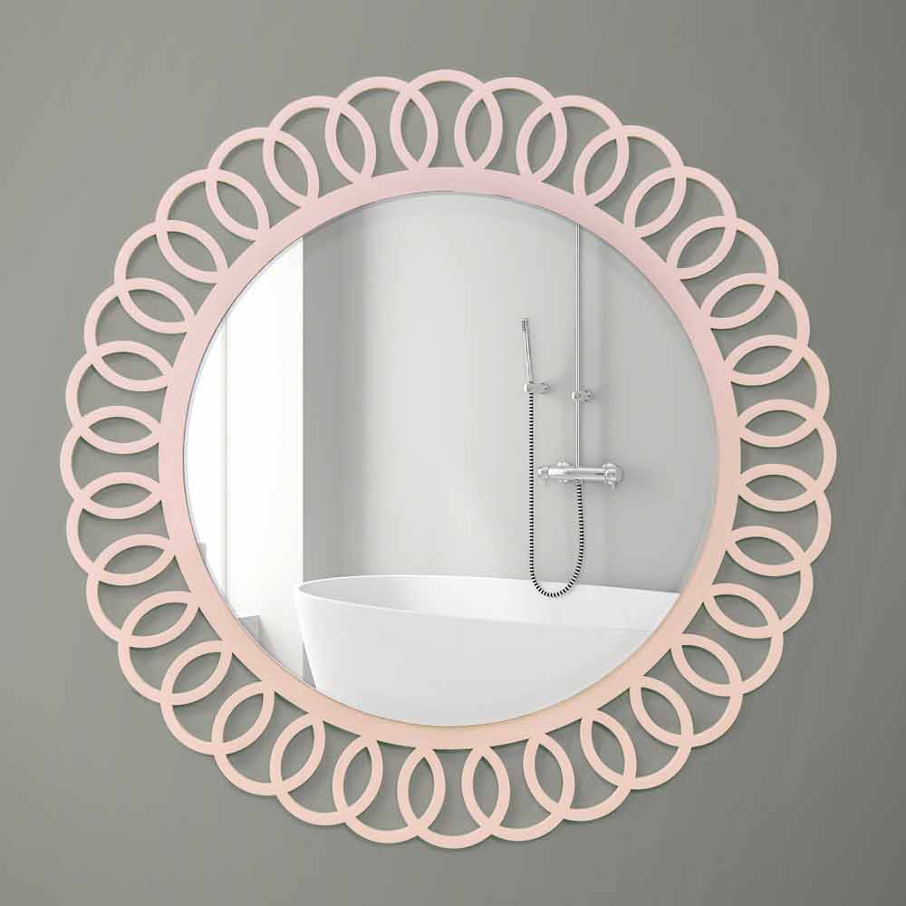 Kulaté nástěnné zrcadlo s růžovým dřevěným rámem s moderním designem vyrobeným v Itálii.