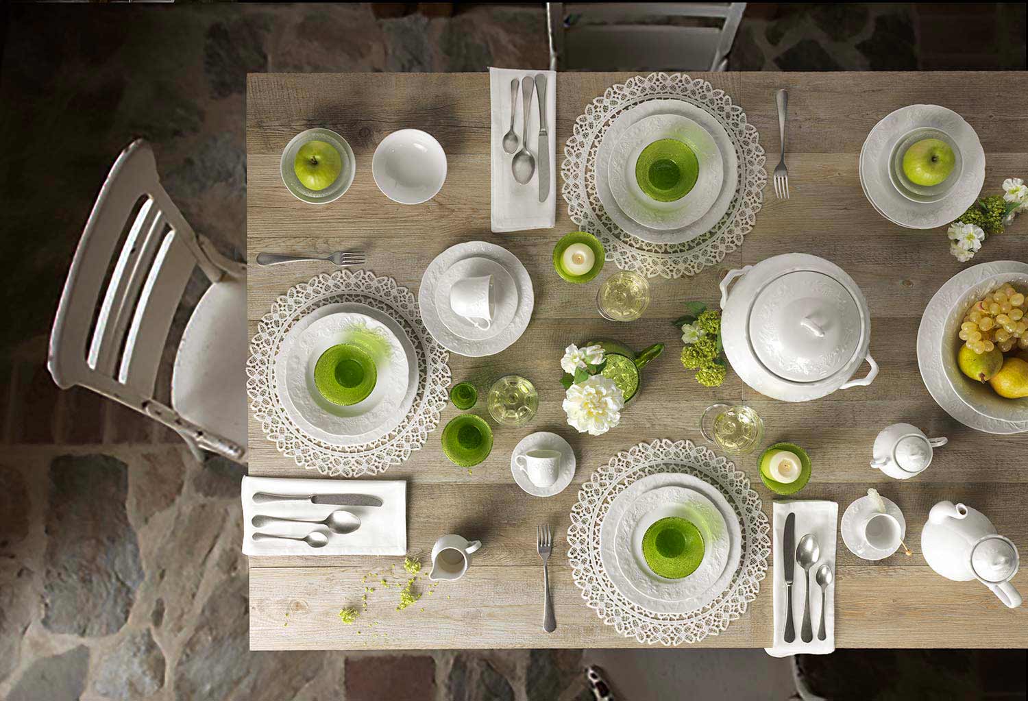 Zažijte kulturu stolu vyrobenou z autentických emocí, které se odrážejí v čistě bílé, vybírají mezi kreativními a vzrušujícími styly, mezi harmonickými tvary v jemném porcelánu, které tato služba nabízí.
