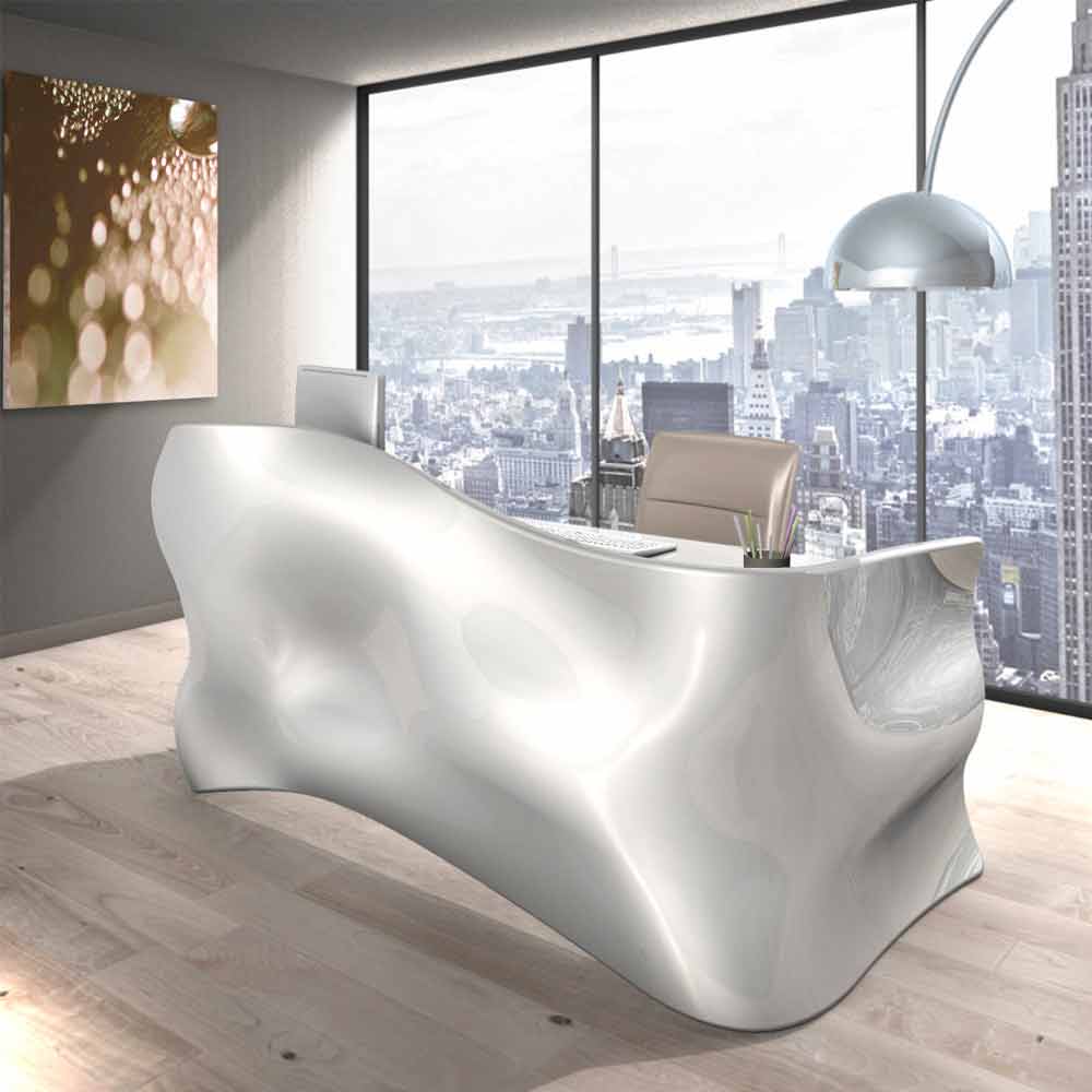 Psací stůl "Velo" byl navržen tak, aby spojoval funkčnost a silný estetický dojem. Vyznačuje se designem s organickými a klikatými liniemi, téměř jako měkký závoj, který složí a zahalí okolní prostor. Jeho sochařský tvar je takový, že jej lze vložit jak do moderního a minimálního prostředí, tak do luxusních pokojů nejvyšší úrovně. Stůl vyznačující se Solid Surface, dostupný ve třech barevných variantách: Bílá (RAL9003), Černá (RAL9005), Dove Grey (RAL1019), vyberte si tu, která vám nejlépe vyhovuje!