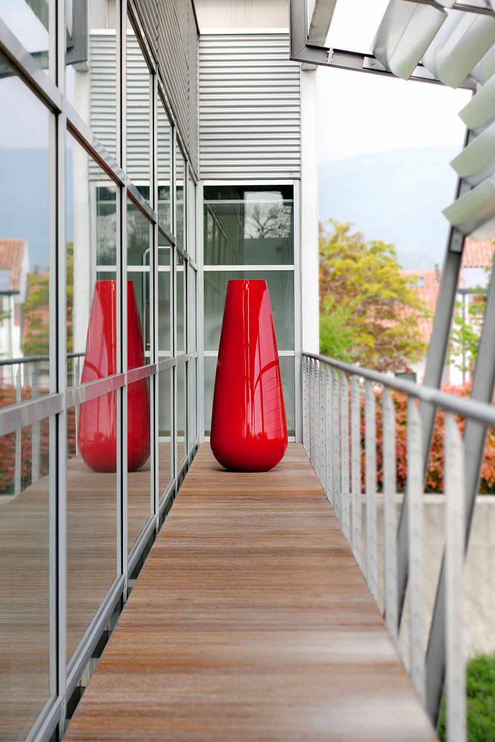 polyethylenu , je k dispozici v neprůhledné verzi, která se vyznačuje vynikající odolností proti nárazům a teplu, v odolné a zářivě lakované verzi, která umožňuje vytvářet hry světla a odlesky, které se stávají protagonisty v prostředí, nebo konečně v metalickém provedení. Ideální pro středně velké rostliny s vertikálním vývojem.
