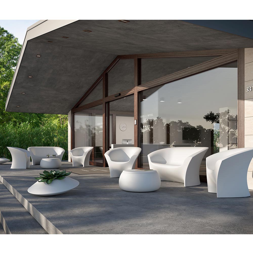 venkovní pohovka se vyznačuje lehkými a jemnými liniemi, ale zároveň je díky zvolenému materiálu vybavena vynikající stabilitou, která zajišťuje robustní a vysoce kvalitní finální produkt. Tento výrobek, který je zcela vyroben v Itálii, je vyroben z polyethylenu, který je k dispozici v neprůhledné verzi, která se vyznačuje vynikající odolností proti slunci, nárazům a teplu, nebo v odolné a zářivě lakované verzi, která umožňuje vytvářet hry světla a odlesky, které se stávají protagonisty uvnitř. životního prostředí. Ideální pro zdobení jakéhokoli venkovního prostředí s chutí a kultivovaností, aniž by byla opomenuta funkční a praktická stránka.