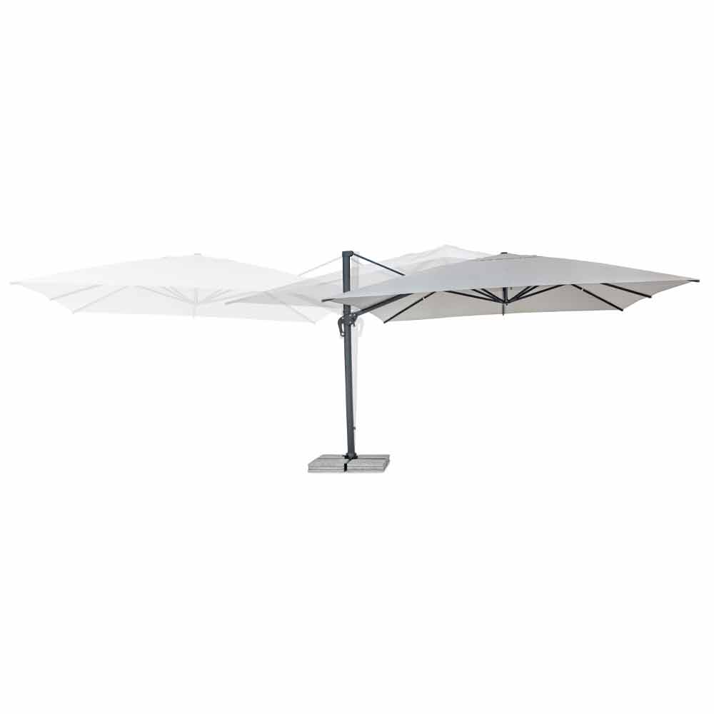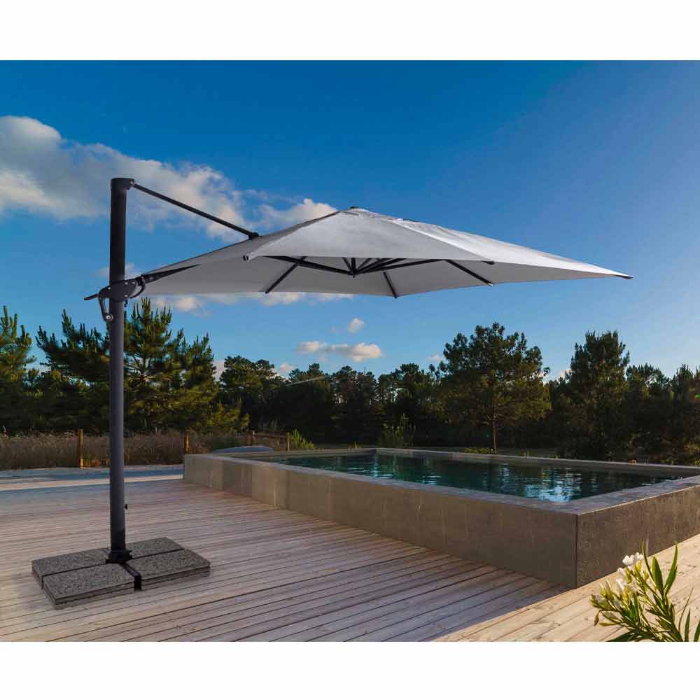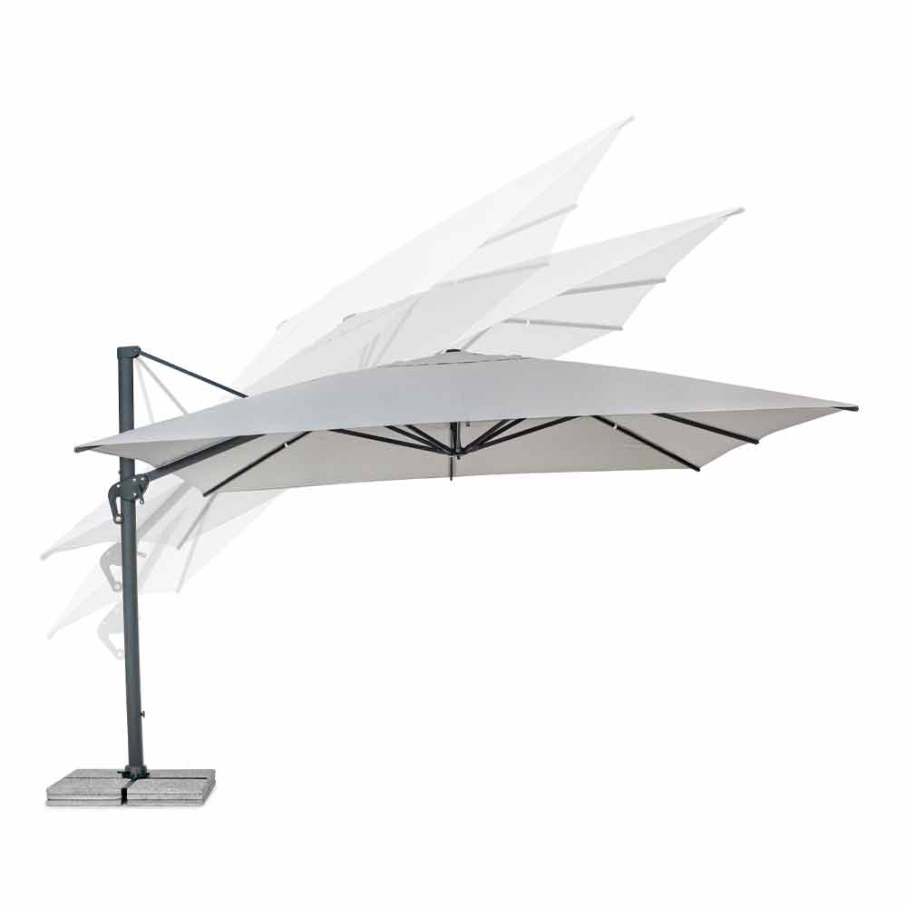Venkovní deštník 4x4 v šedém polyesteru a antracitovém hliníku.