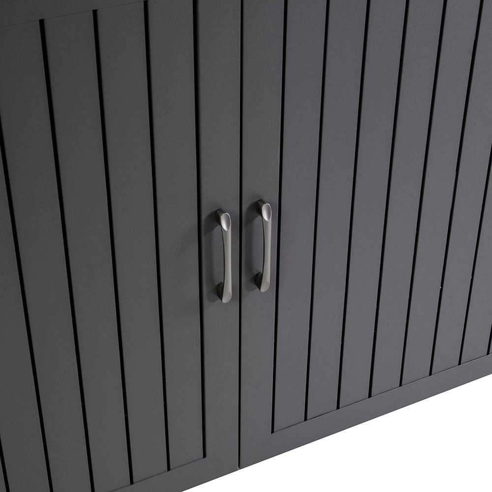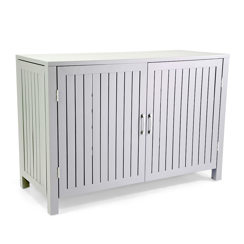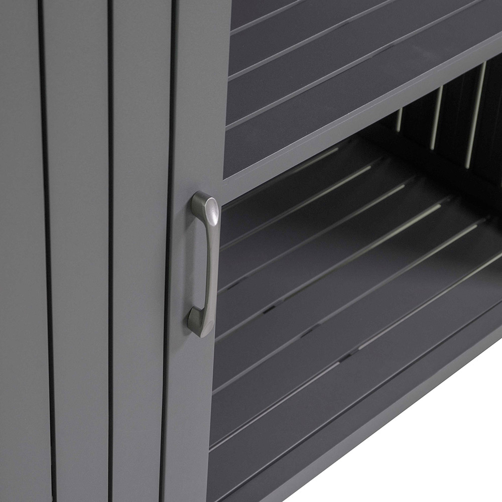 Design lamelových dvířek je nejen estetický, ale také poskytuje dostatečné větrání, takže je ideální pro uložení venkovních polštářů, zahradního nářadí nebo příslušenství k bazénu.