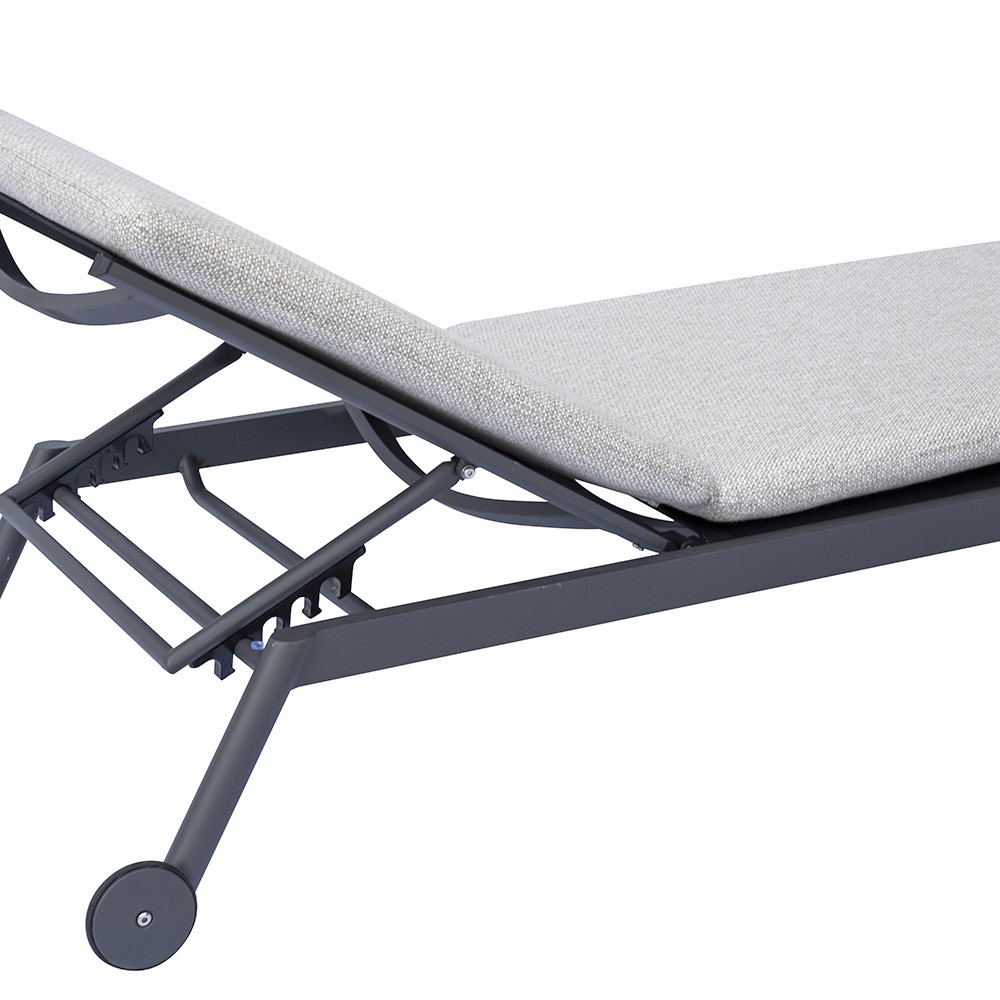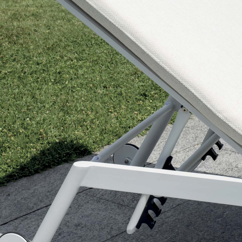 Toto lehátko v sobě spojuje pohodlí, eleganci a praktičnost a nabízí ideální řešení pro chvíle čisté relaxace venku. Díky hliníkovému rámu a kolečkům je lehké, odolné a snadno se přemisťuje, takže je ideální do zahrad, na terasu a k bazénu.