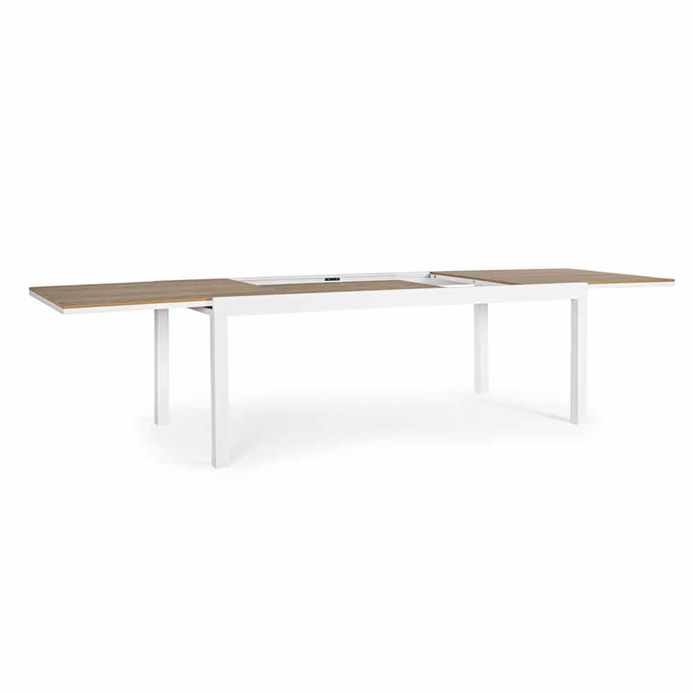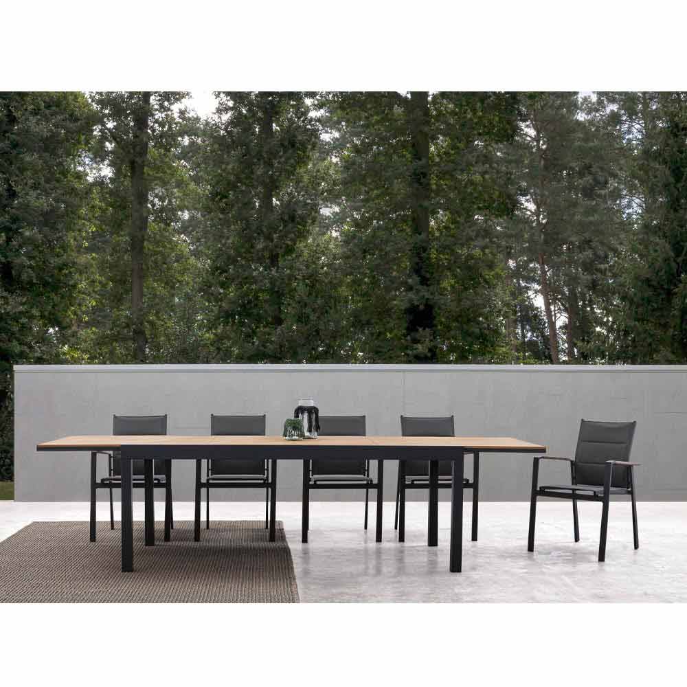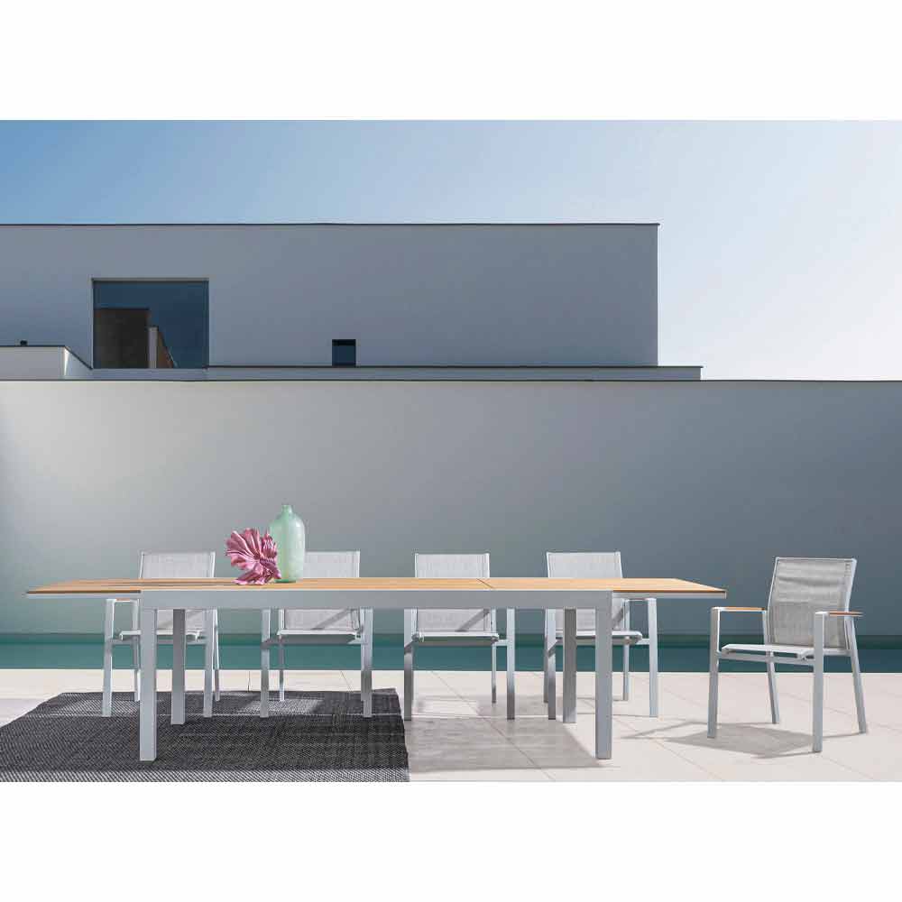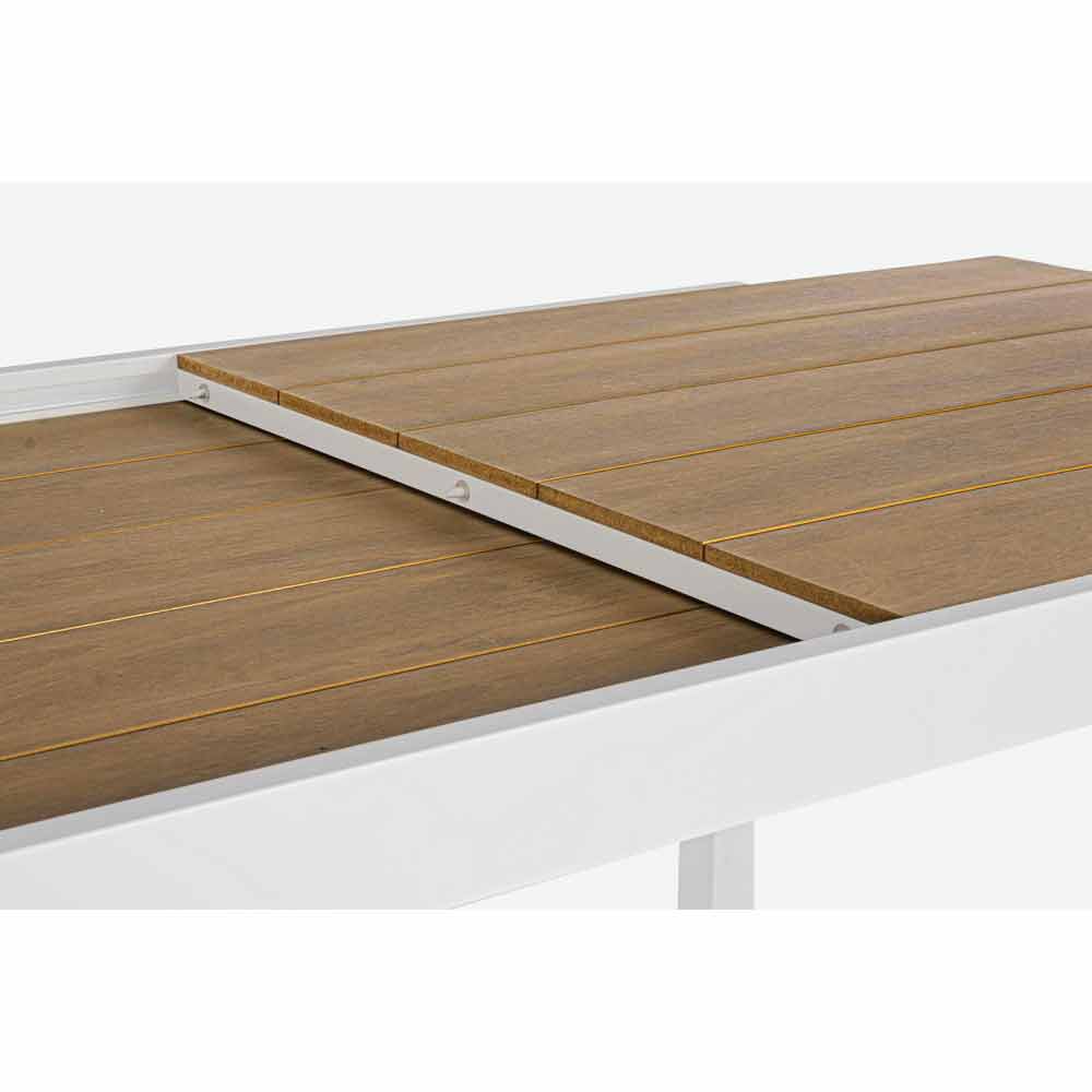 Venkovní jídelní stůl s výsuvnou deskou z dřevěného dřeva.