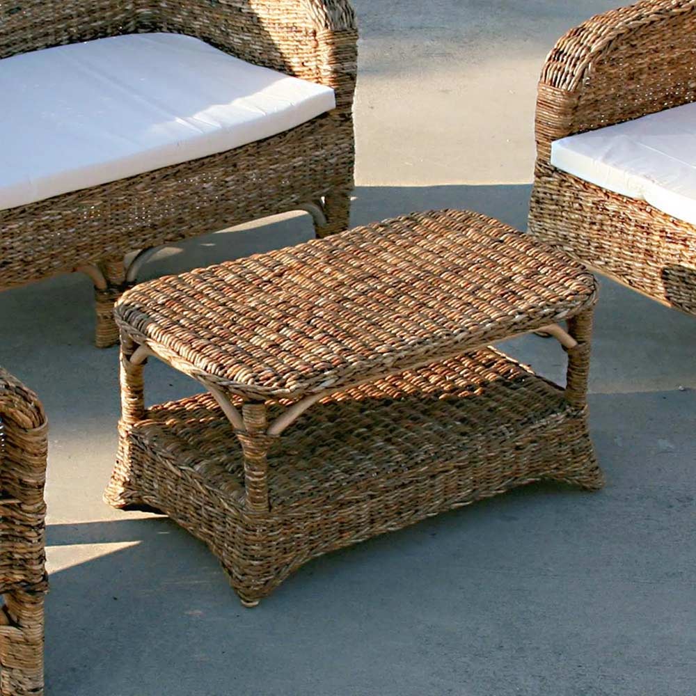 Tento konferenční stolek z přírodní banánové tkaniny je vynikajícím příkladem funkčního designu . Teplý a příjemný vzhled tkaní dodává každému venkovnímu prostoru nádech sofistikované rustikality a vytváří přívětivou a relaxační atmosféru. Robustnost konstrukce zajišťuje, že je nejen krásný na pohled, ale také odolný a stabilní , ideální pro každodenní použití.