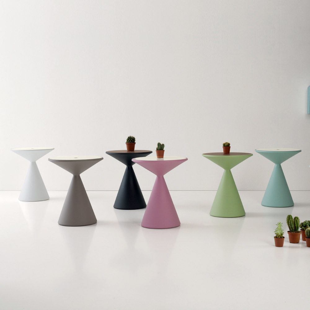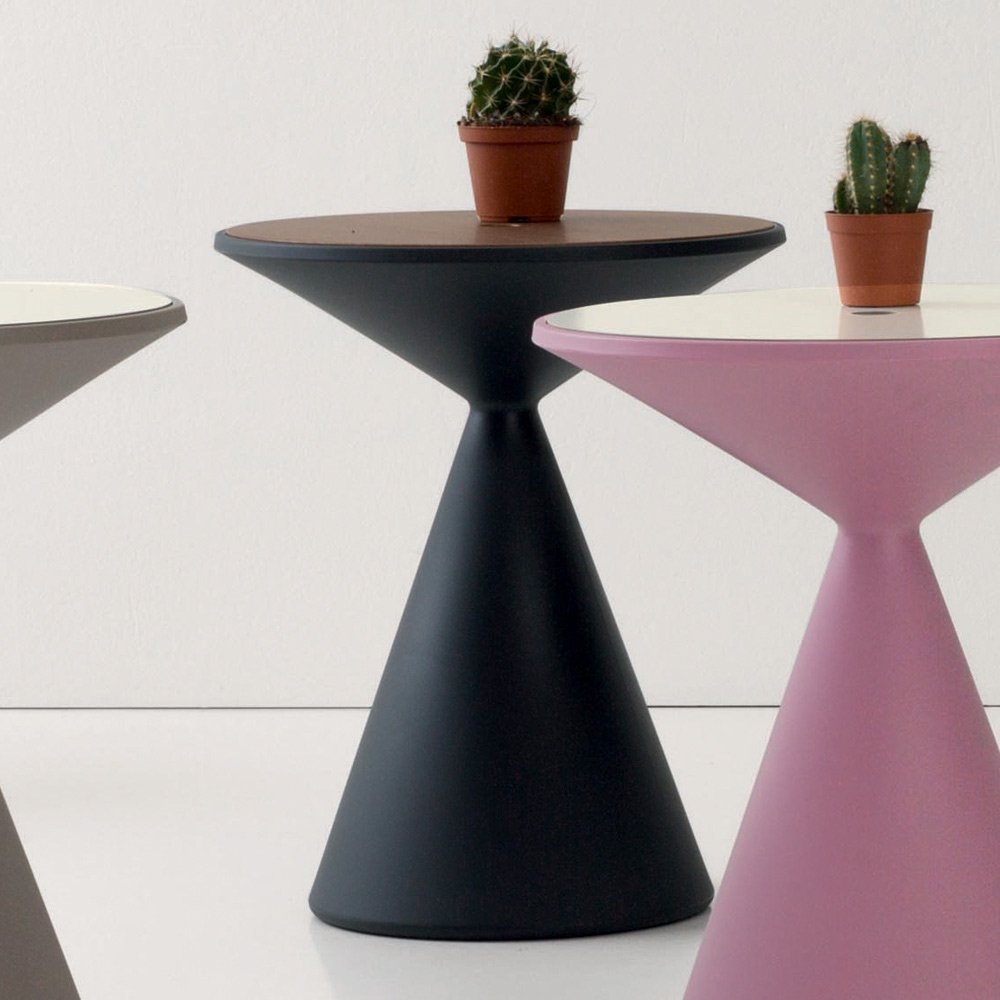 Kulatý venkovní stůl z barevného polyetylenu s vnitřní nádobou vyrobený v Itálii.