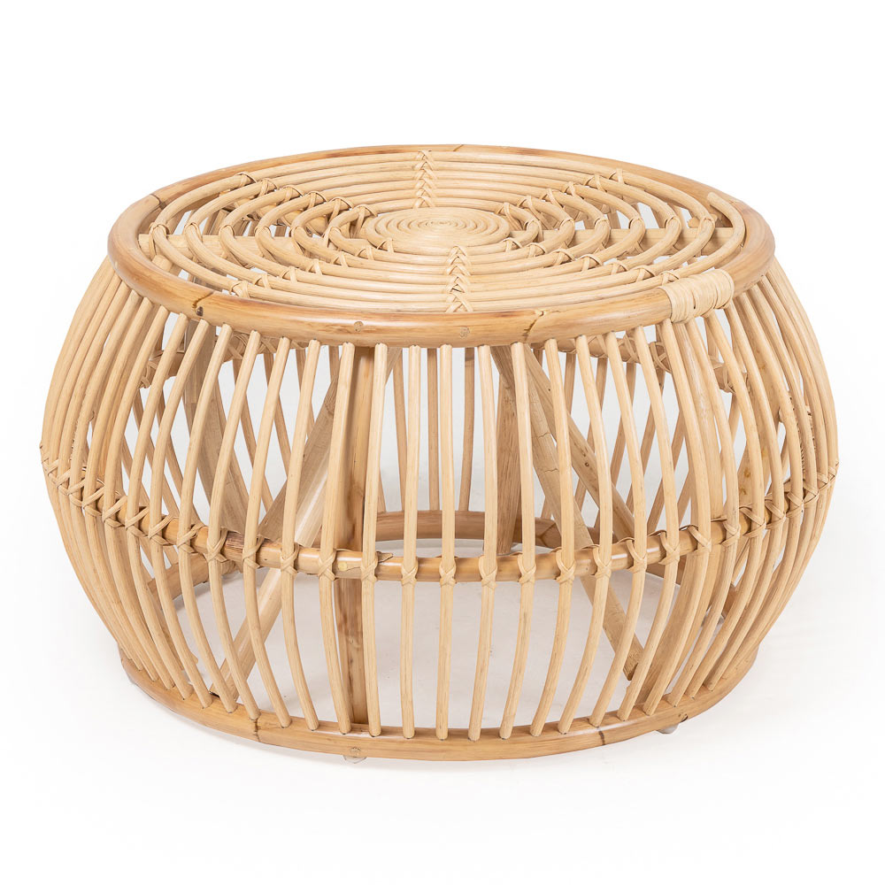 Zahradní stolek z ručně tkaného přírodního ratanu.