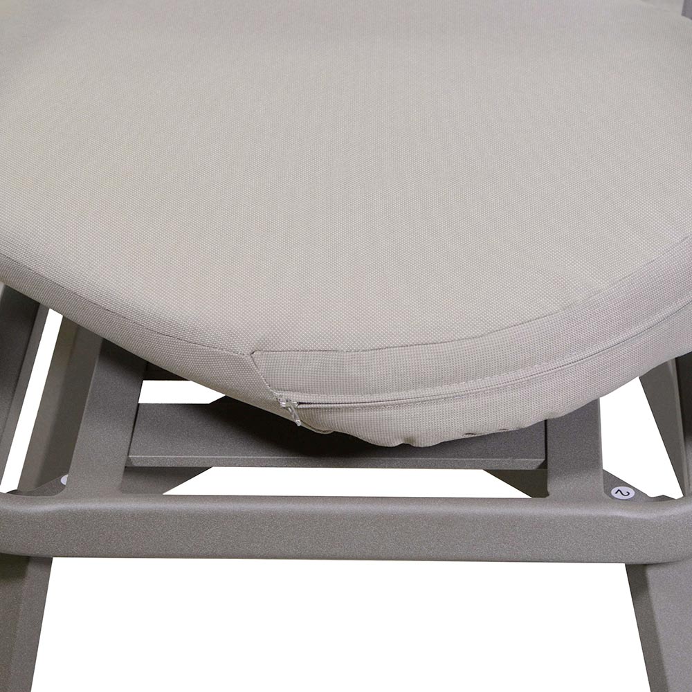 Robustní hliníkový rám zajišťuje trvanlivost a odolnost vůči povětrnostním vlivům, zatímco jeho neutrální barva a elegantní tvar se dokonale začlení do jakéhokoli venkovního interiéru. Ideální pro ty, kteří hledají nekompromisní styl a trvalé pohodlí.