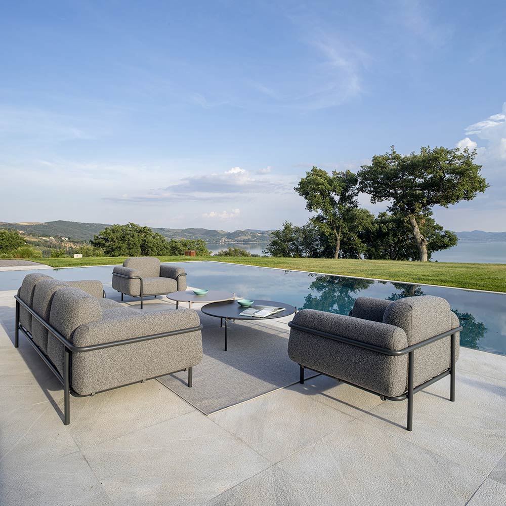odolnost povrchové úpravy materiálu vůči korozivním atmosférickým vlivům, jako je sůl nebo kyselost deště. Polštáře jsou vyrobeny z materiálu odolného vůči UV záření a vodě, který si dlouhodobě zachovává barvu.