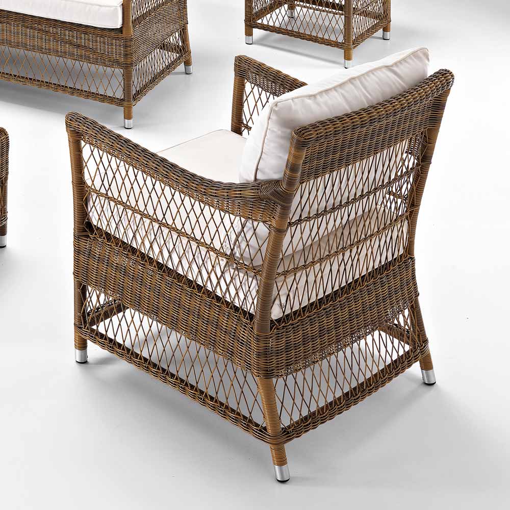 Styl vyplétání je rafinovaný a jemný a spolu s velmi vysokou kvalitou materiálů a jeho rozhodnými tvary činí toto křeslo ideálním pro vybavení interiérů a exteriérů, a to jak soukromých, tak smluvních prostředí, jako jsou terasy, verandy, zahrady, ale také najdou perfektní umístění u bazénu.