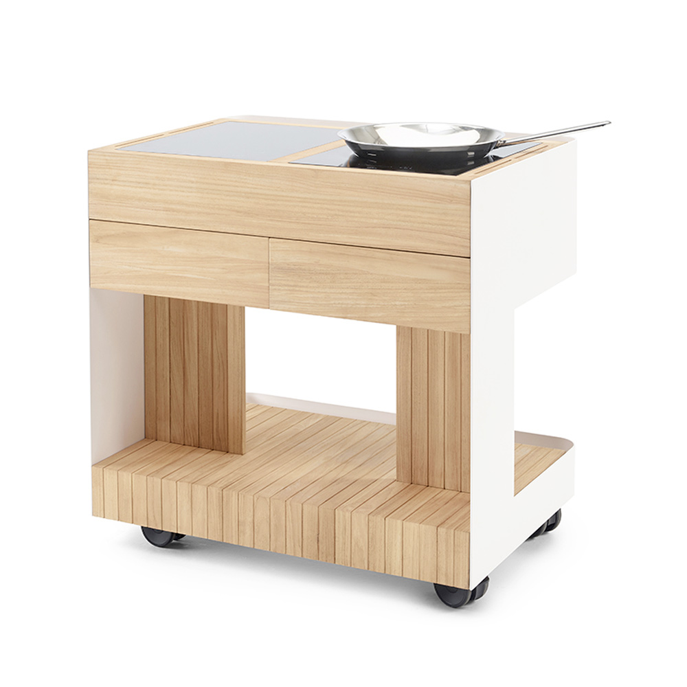 Tato venkovní kuchyně představuje dokonalou kombinaci funkčnosti a moderního designu, která je ideální pro proměnu každé vaší venkovní chvíle v jedinečný zážitek. Rám z práškově lakovaného hliníku nabízí pevnost a odolnost vůči povětrnostním vlivům, zatímco vysoce kvalitní masivní dřevěné vložky z dřeva ošetřeného přípravkem Rubio Monocoat Hybrid Wood Protector dodávají přírodní eleganci a vizuální teplo.