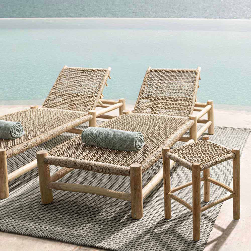 Venkovní lehátko v teakovém a syntetickém vlákně.