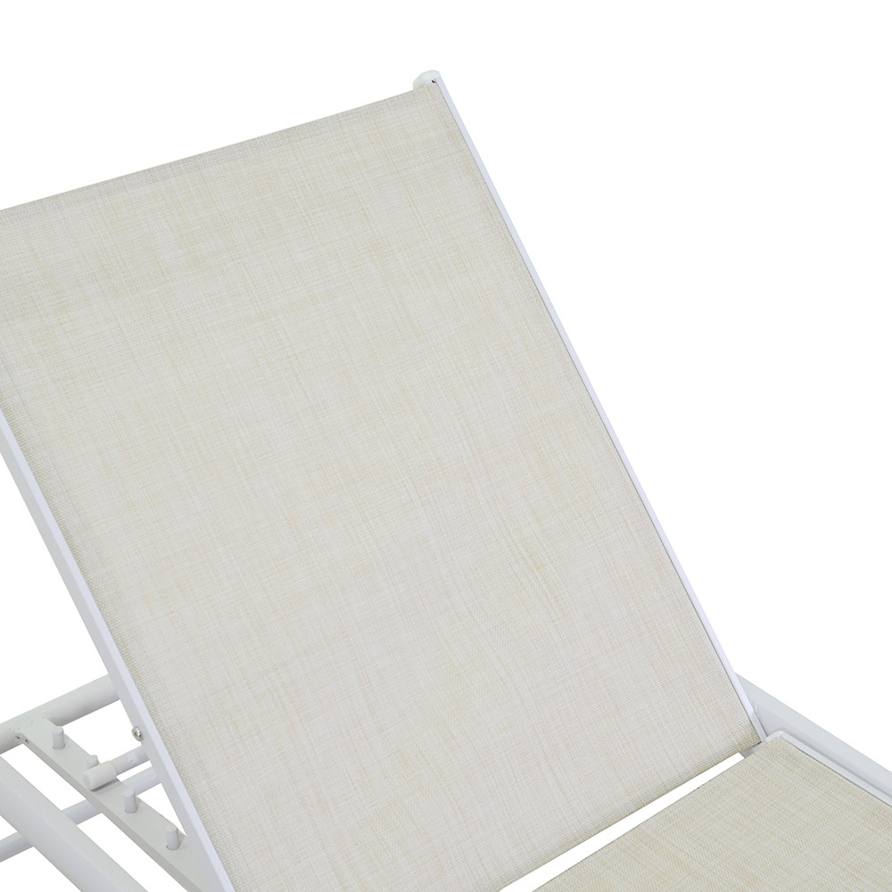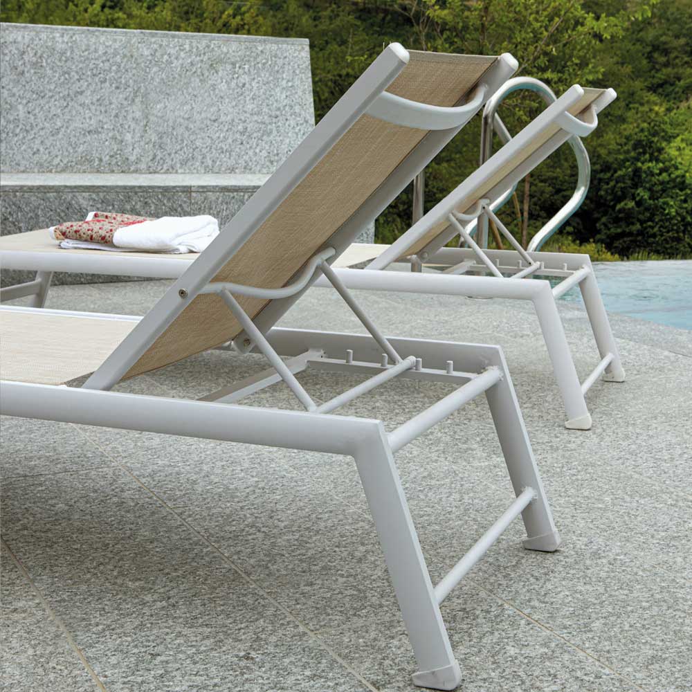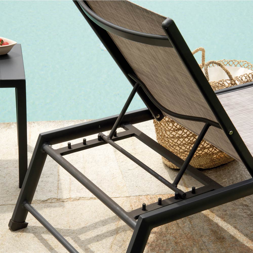Vyrobeno s hliníkovým rámem , lehátko je lehké a zároveň odolné proti korozi , což zajišťuje odolnost a snadný pohyb. Jeho textilenový povrch je pohodlný , prodyšný a snadno se čistí, takže nabízí pohodlný odpočinek i v těch nejteplejších dnech.